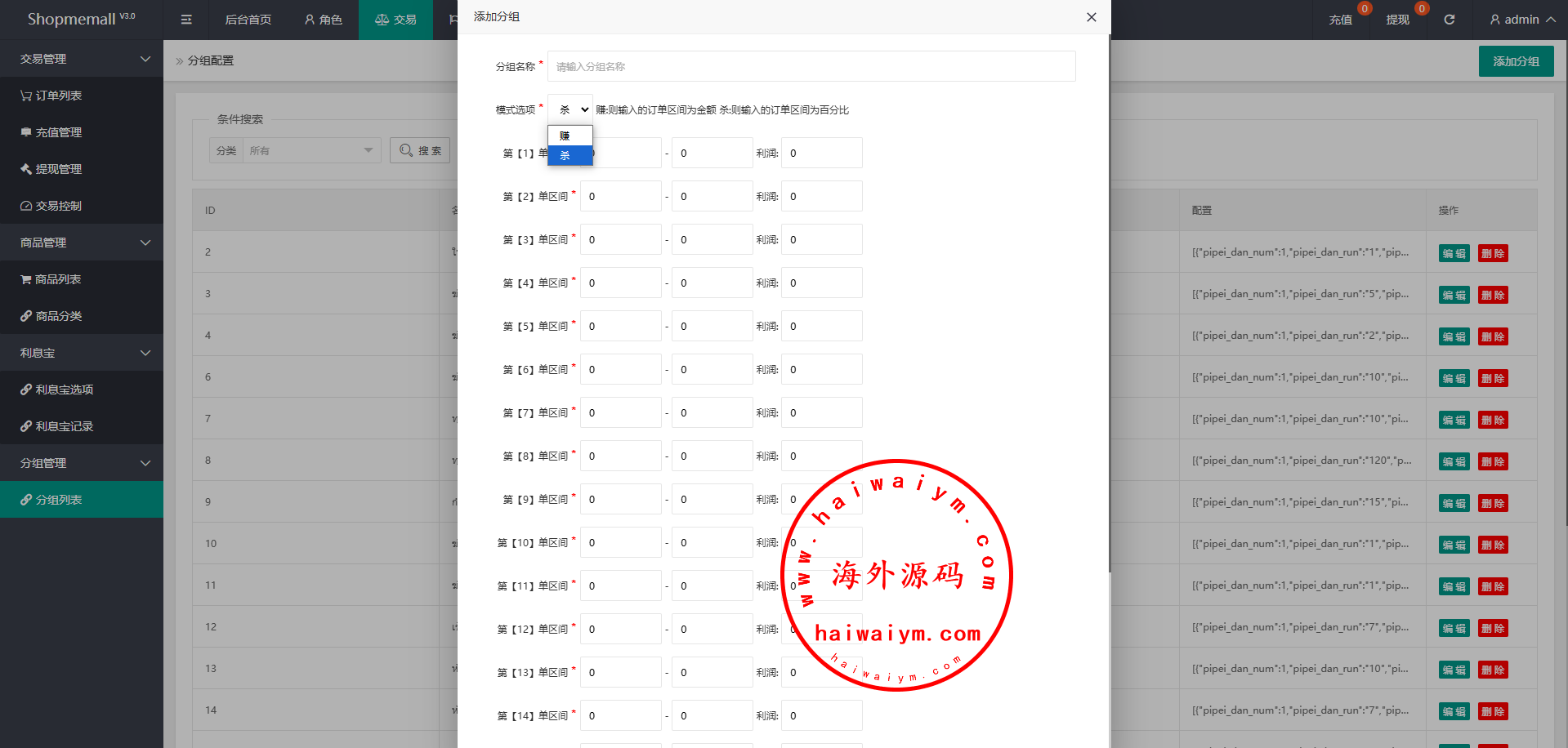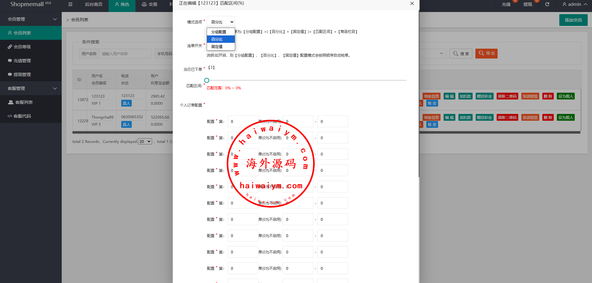 系统功能支持:支持分组、百分比、固定值、连单设置、充值彩金等功能