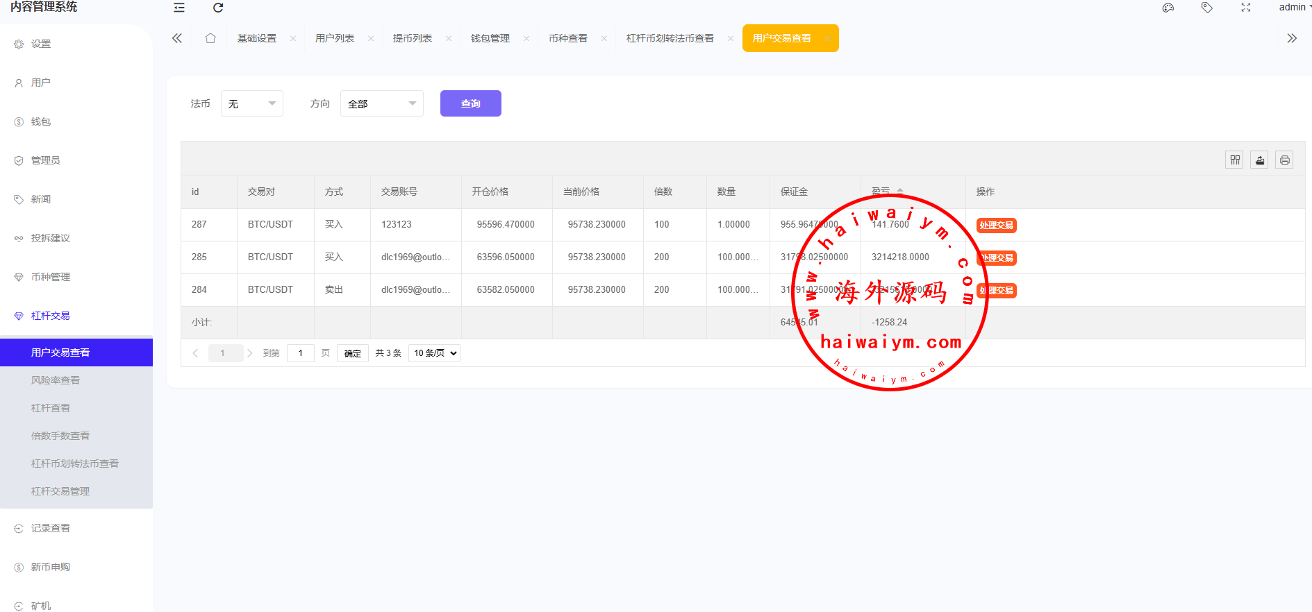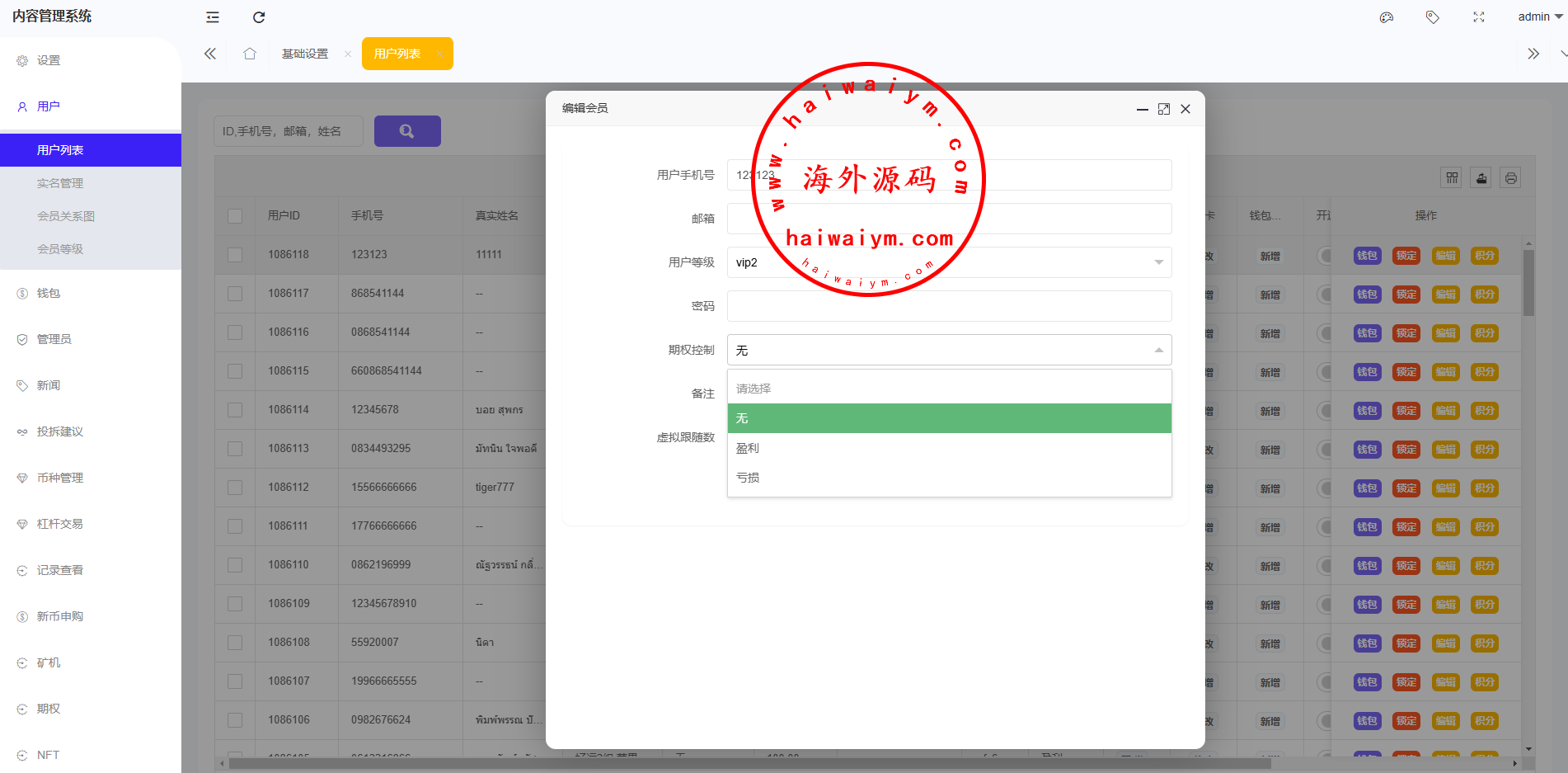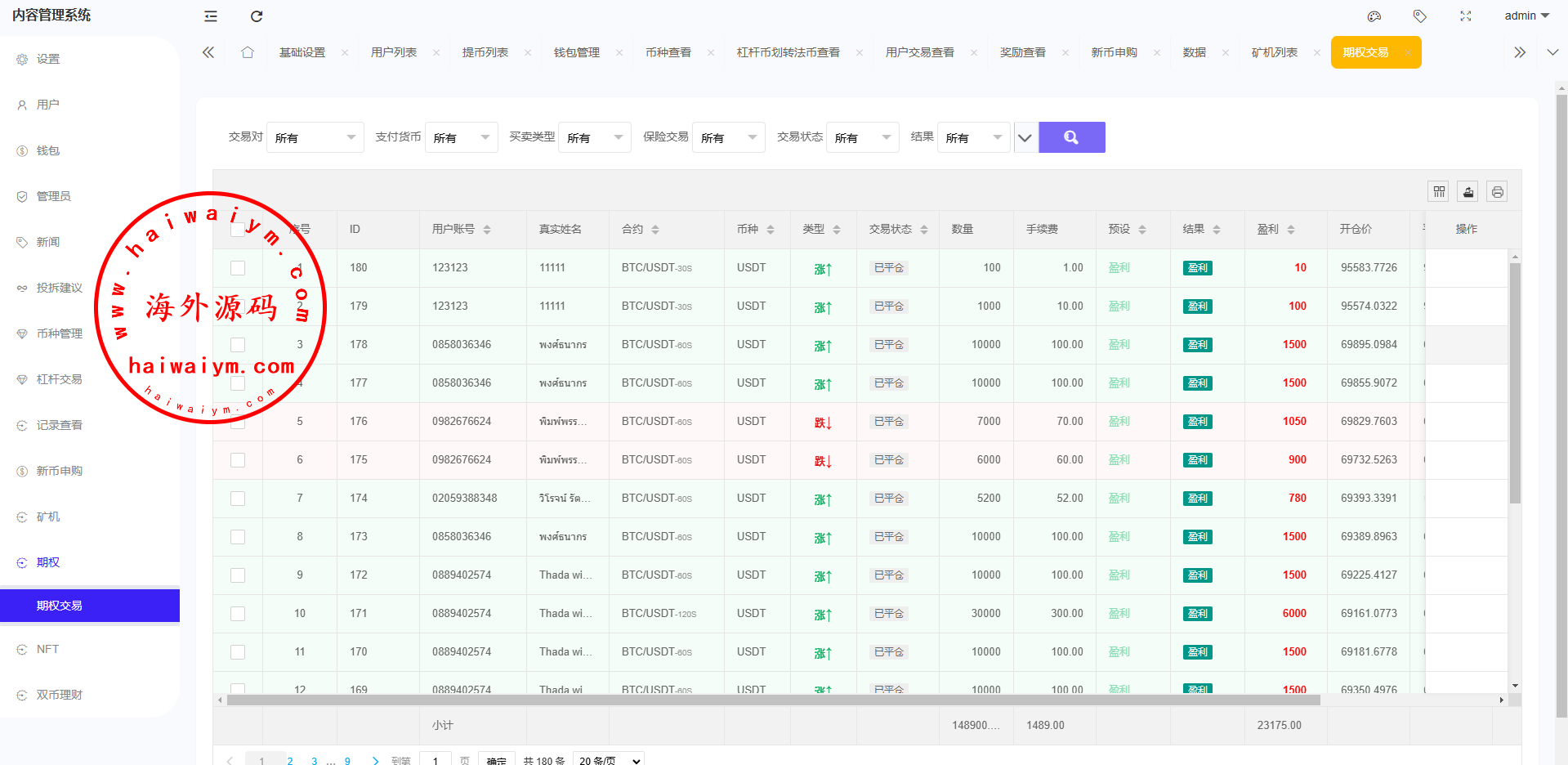 海外交易所系统/合约/期权/质押/秒合约/插针控制/申购