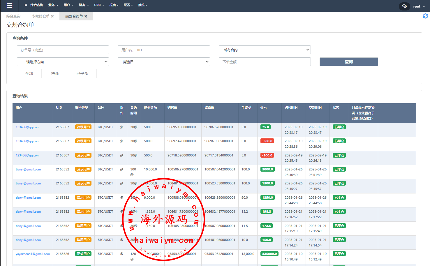 海外交易所系统/合约/期权/质押/秒合约/插针控制/申购