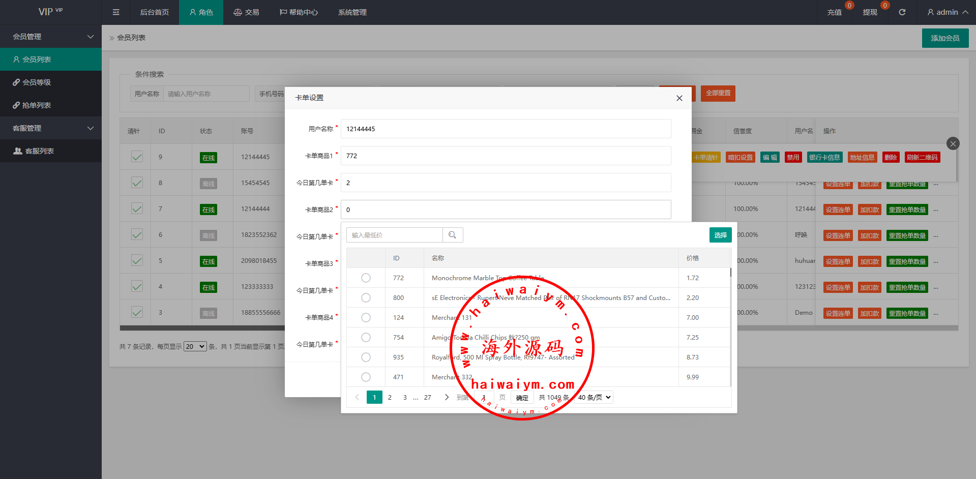 海外商城抢单刷单系统/预设订单/重置订单/签到
