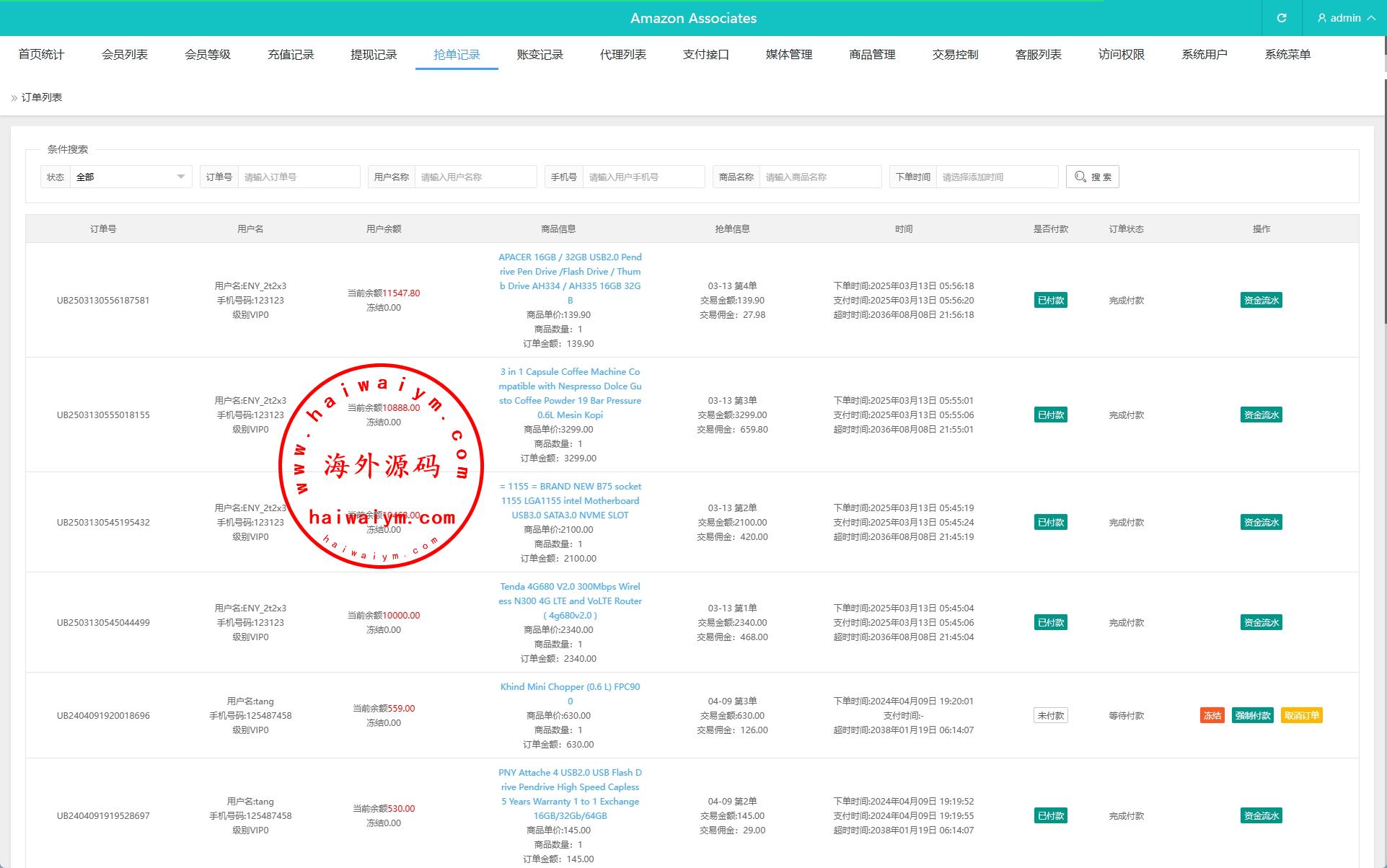 海外商城抢单刷单系统/预设订单/重置订单/签到