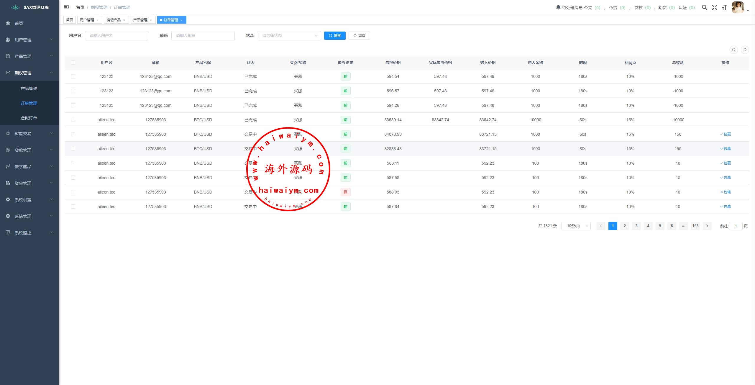 海外交易所系统/合约/期权/质押/秒合约/插针控制/申购