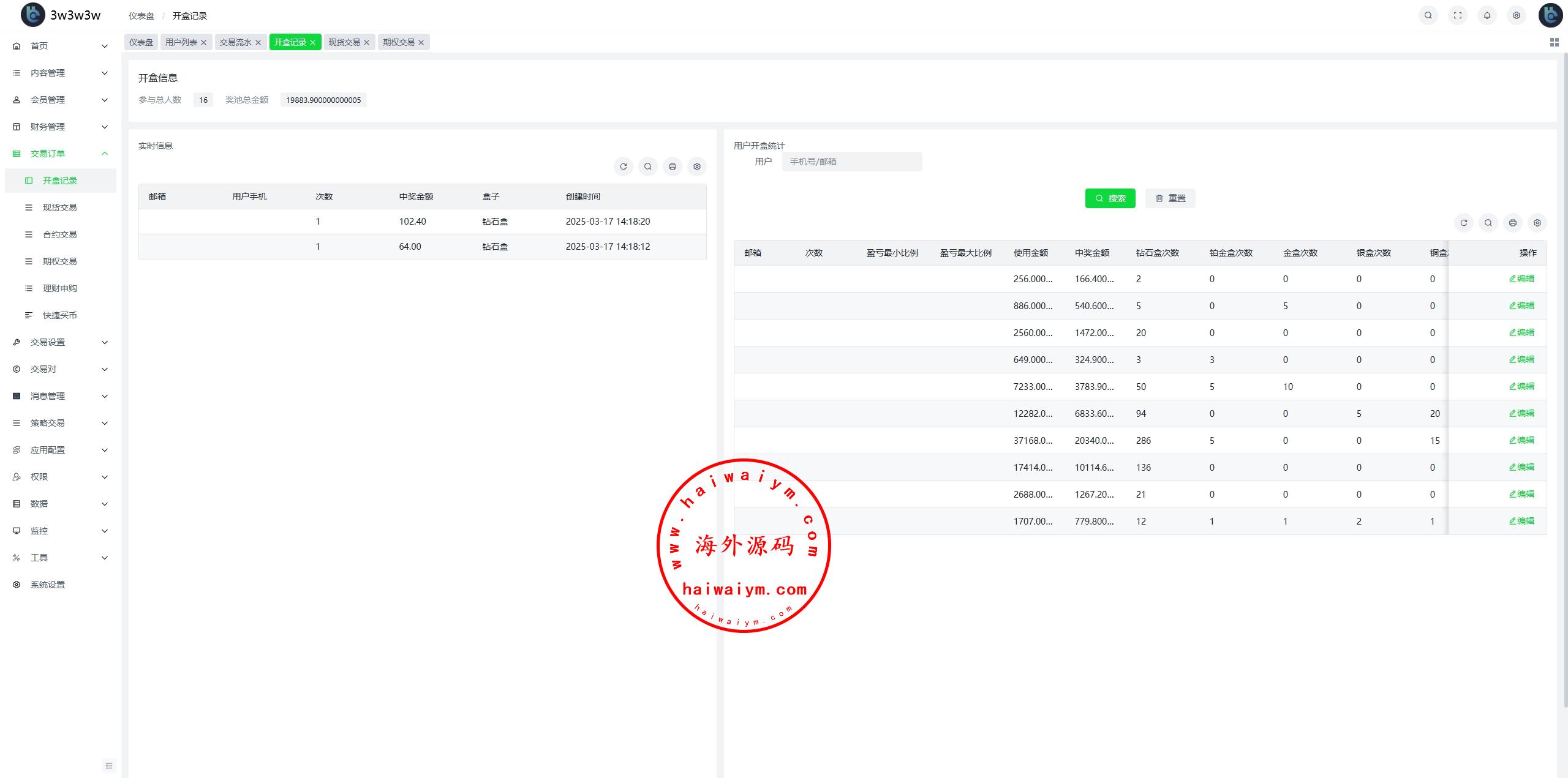 海外交易所系统/合约/期权/质押/秒合约/插针控制/申购