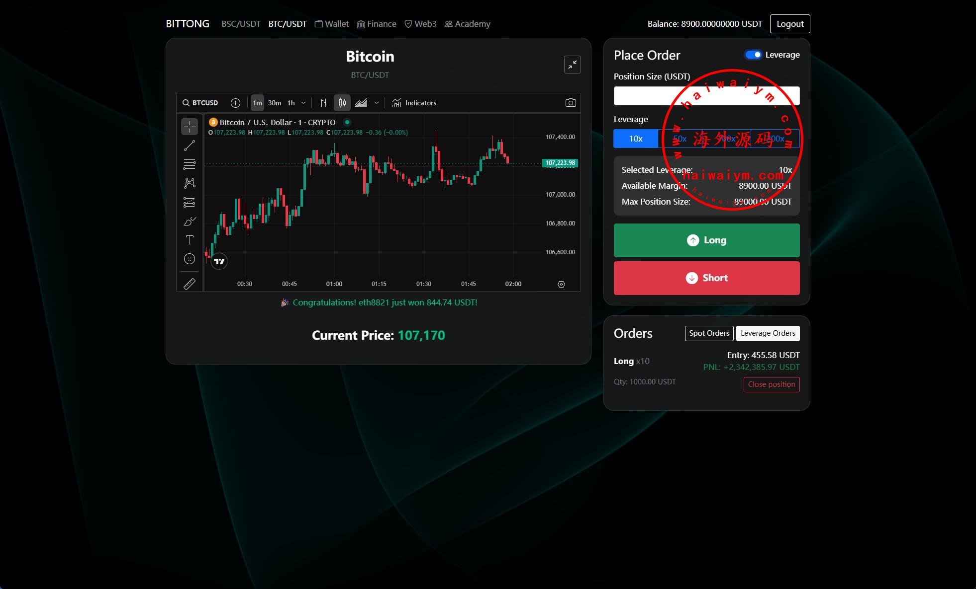 系统只有BSC跟BTC交易,支持秒合约跟杠杆交易