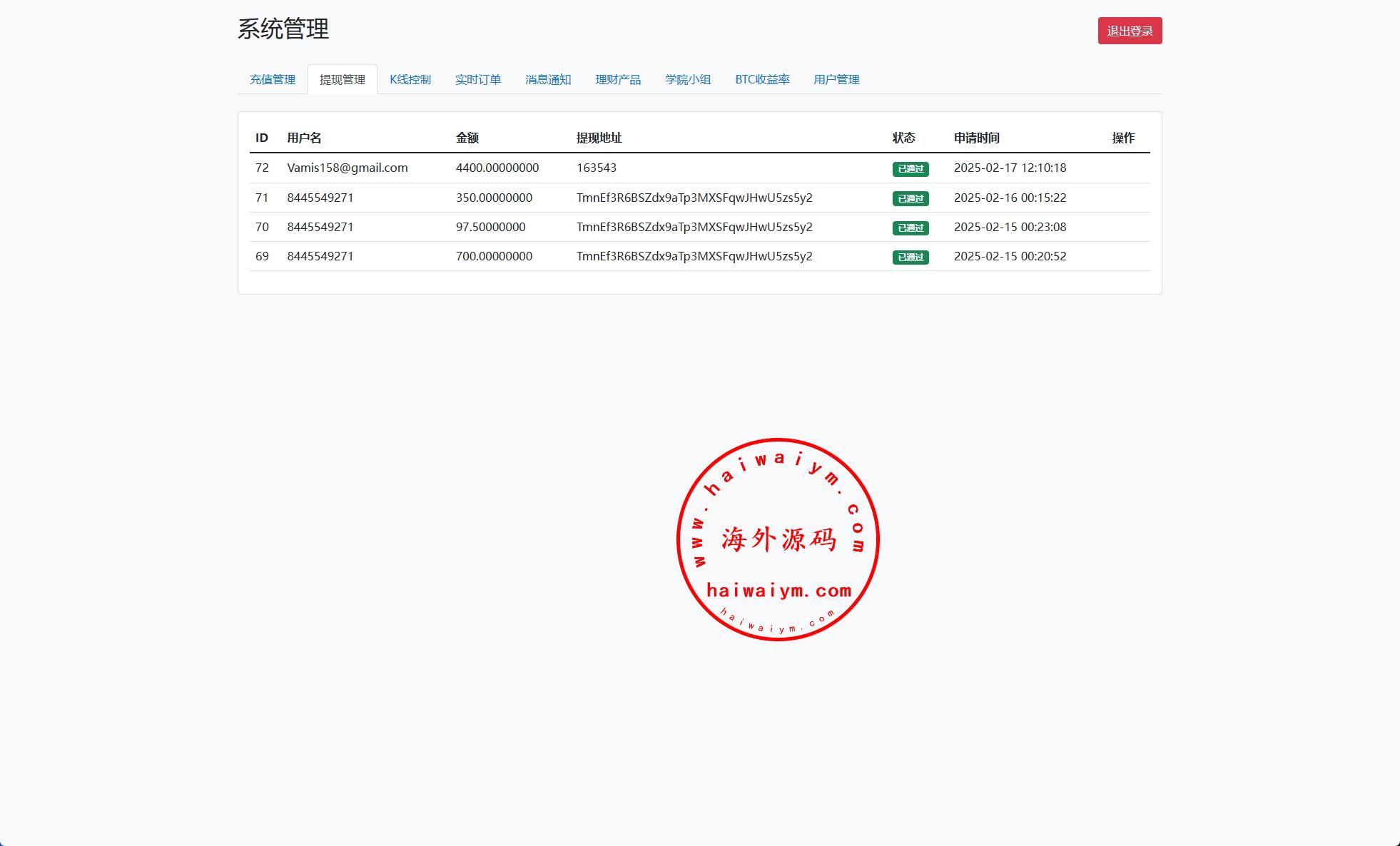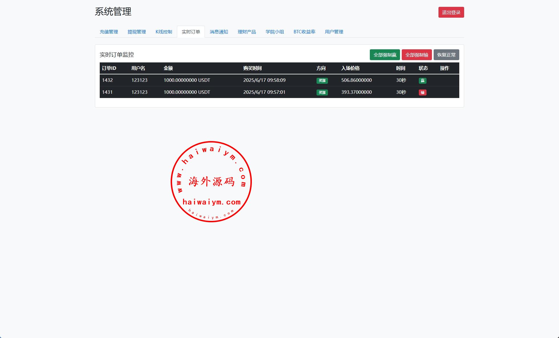 海外交易所系统/合约/期权/质押/秒合约/插针控制/申购