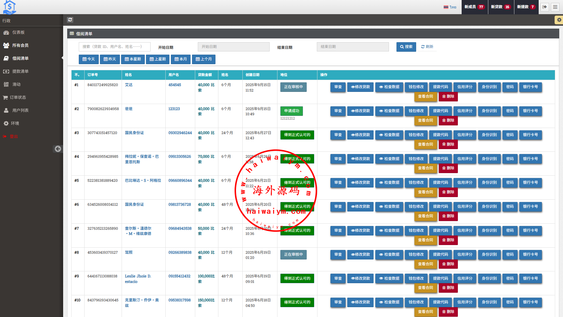 海外贷款平台/小额贷款系统/信用分/合同/提现码