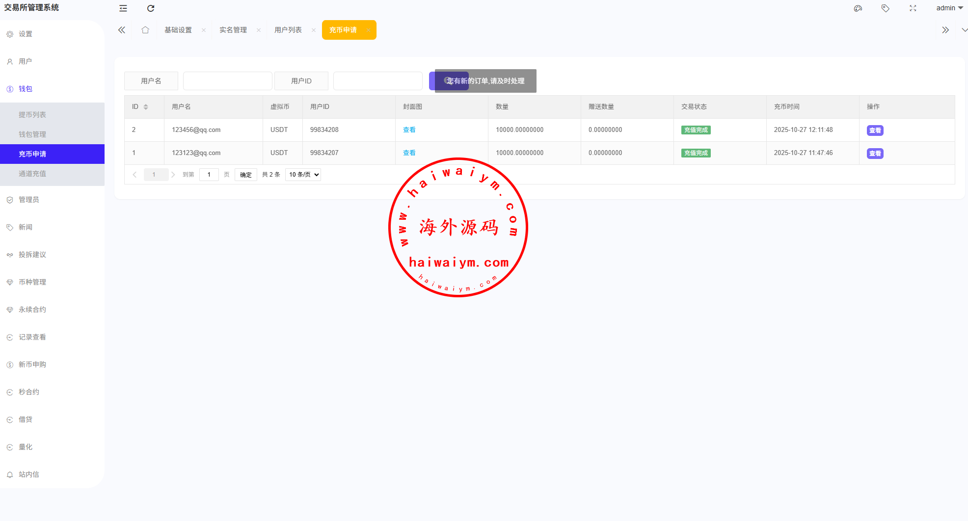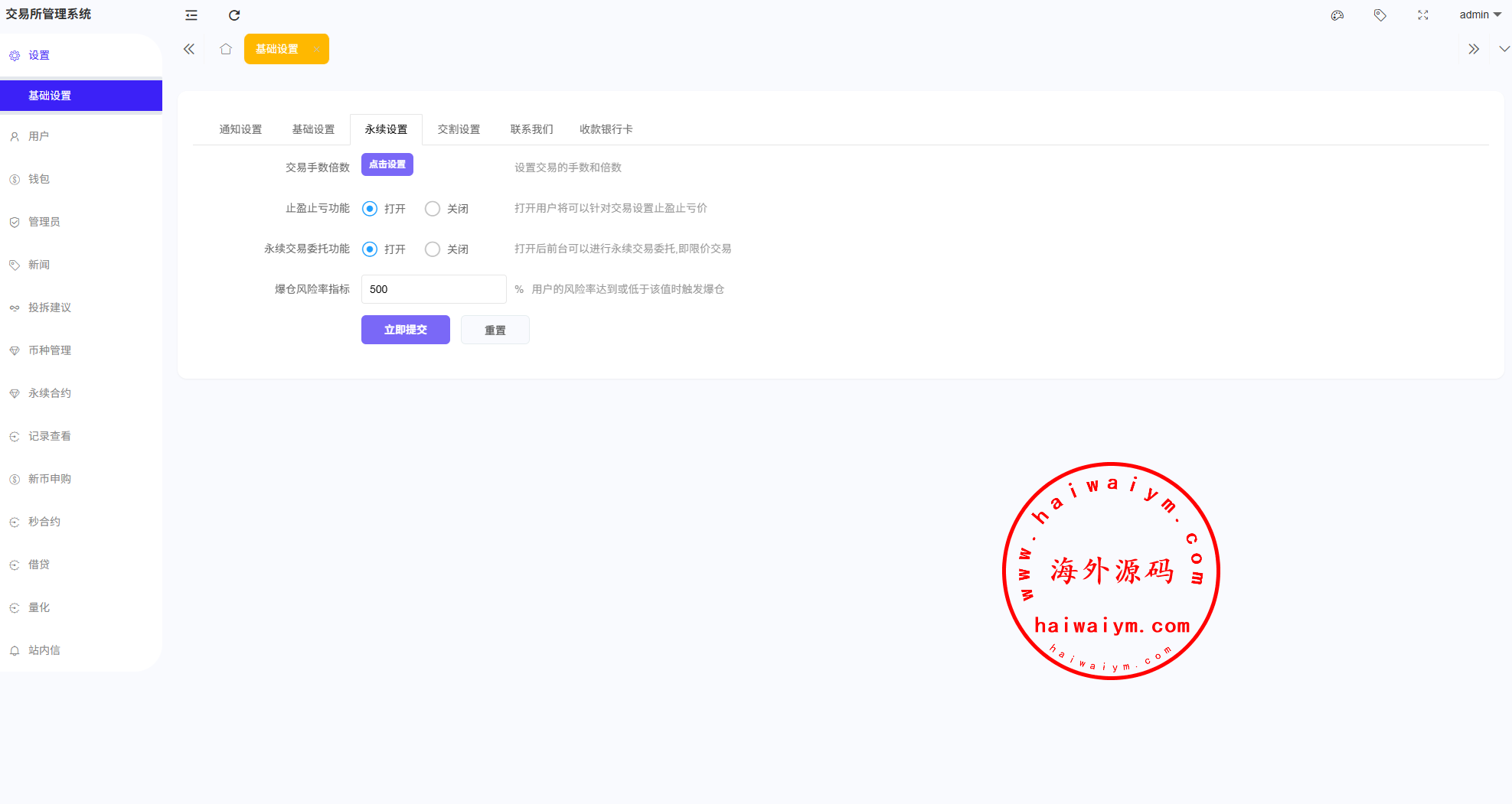 海外交易所系统/合约/期权/质押/秒合约/插针控制/申购