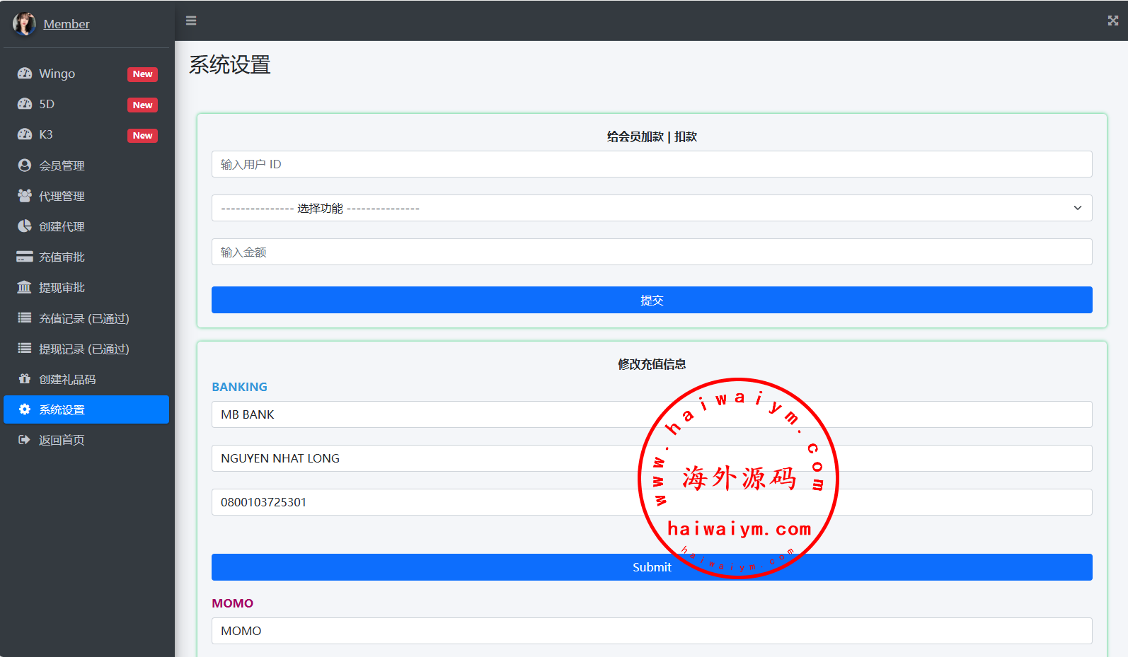 前端多语言:中文,英文,越南语,系统全开源带教程游戏有三种玩法每种玩法都有13510分钟,系统彩支持预设开奖
