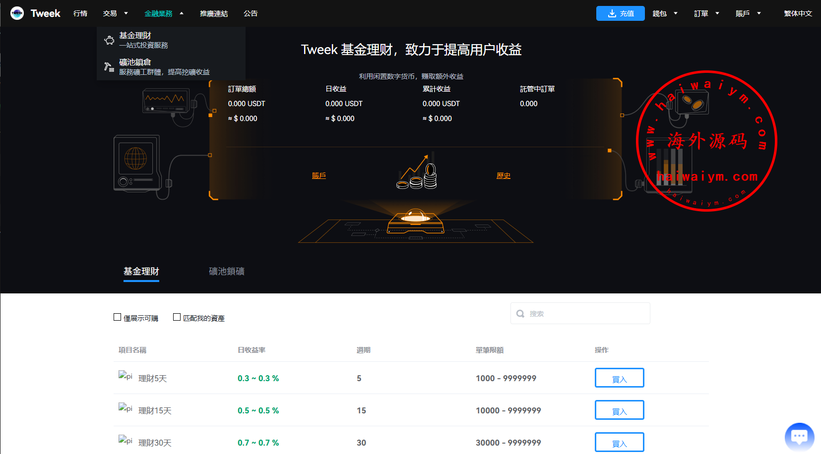 系统功能:永续合约、交割合约、现货交易、理财、C2C、矿池、NFT、质押借币等功能