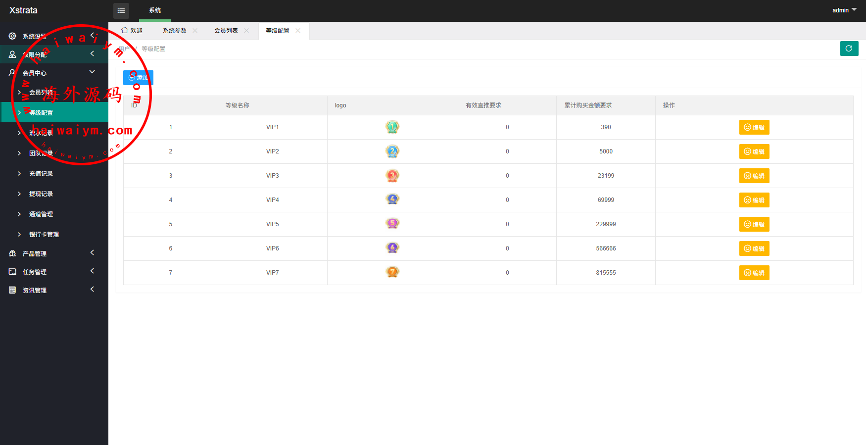 支持多级分销推广,支持多VIP等级产品购买,推广任务等功能