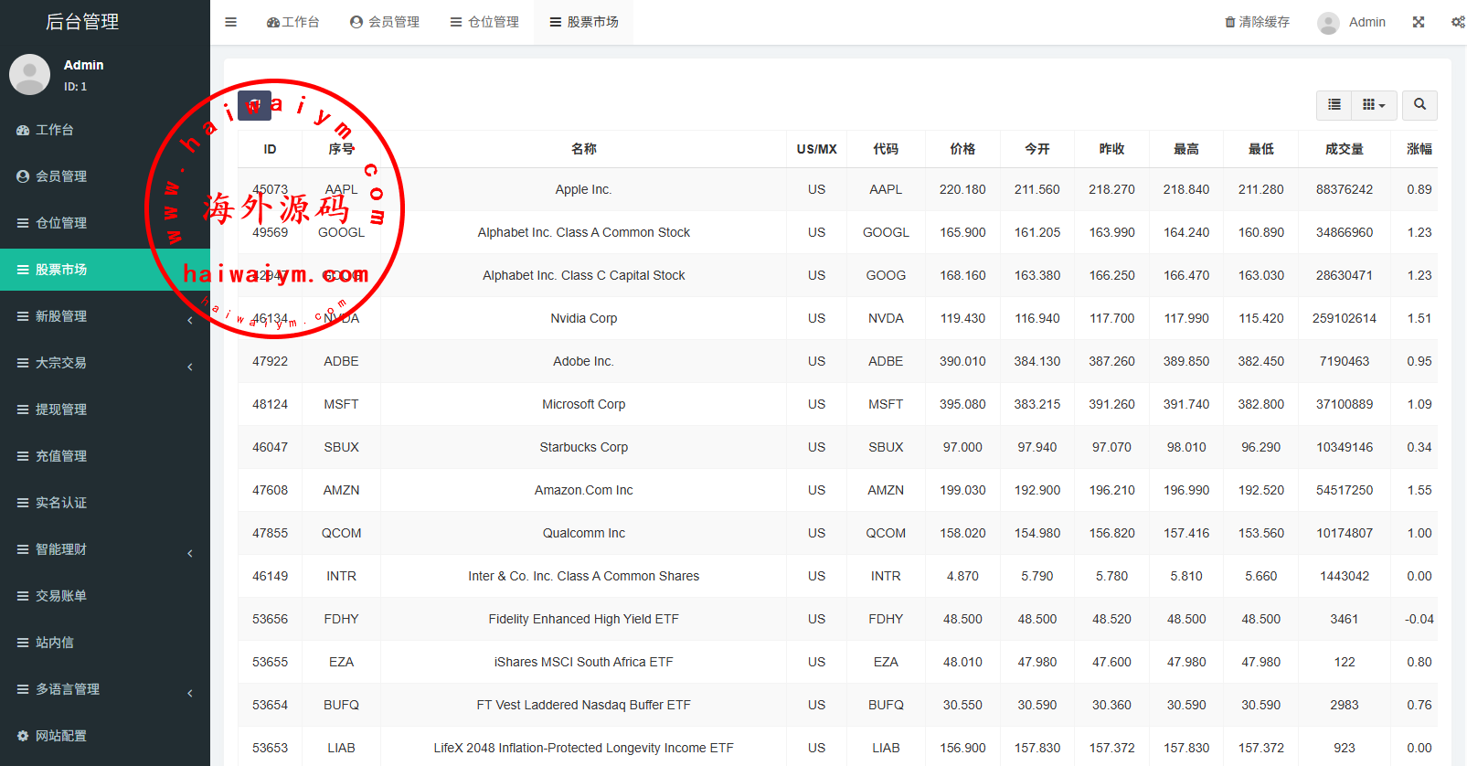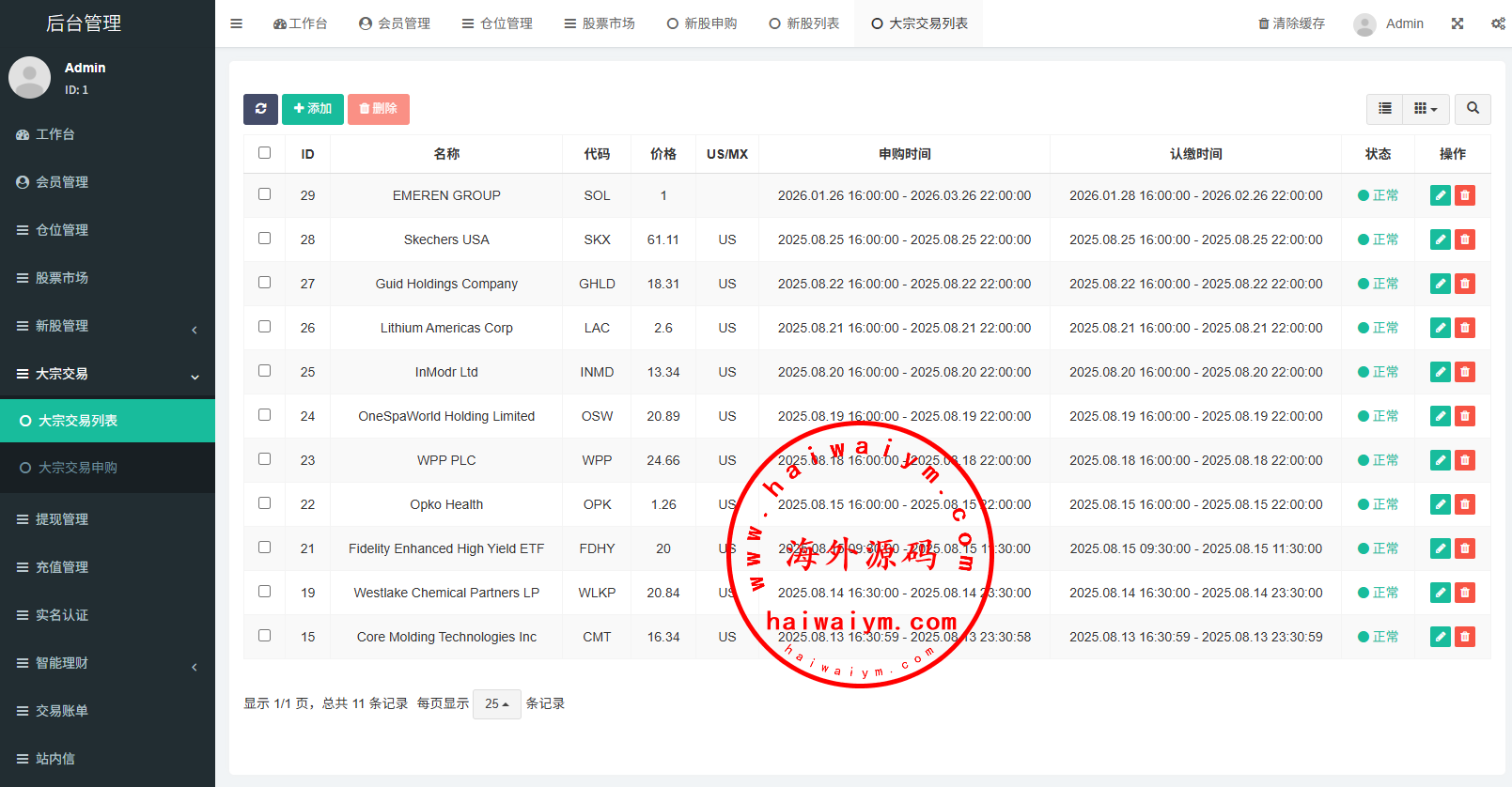 支持代理后台,usdt充值,大宗交易,新股认购,产品理财等功能