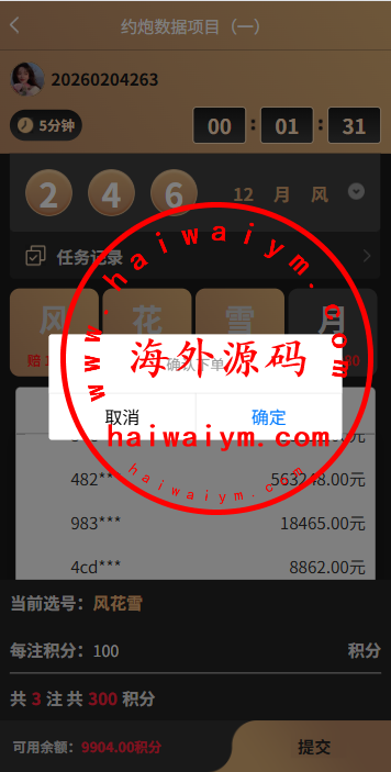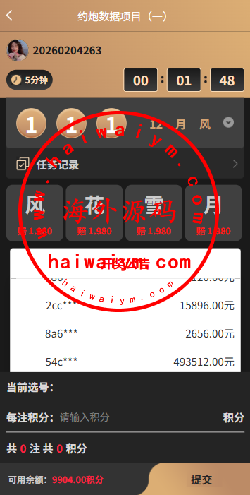 新版空降约炮系统/同城任务/系统彩预设/前后端VUE