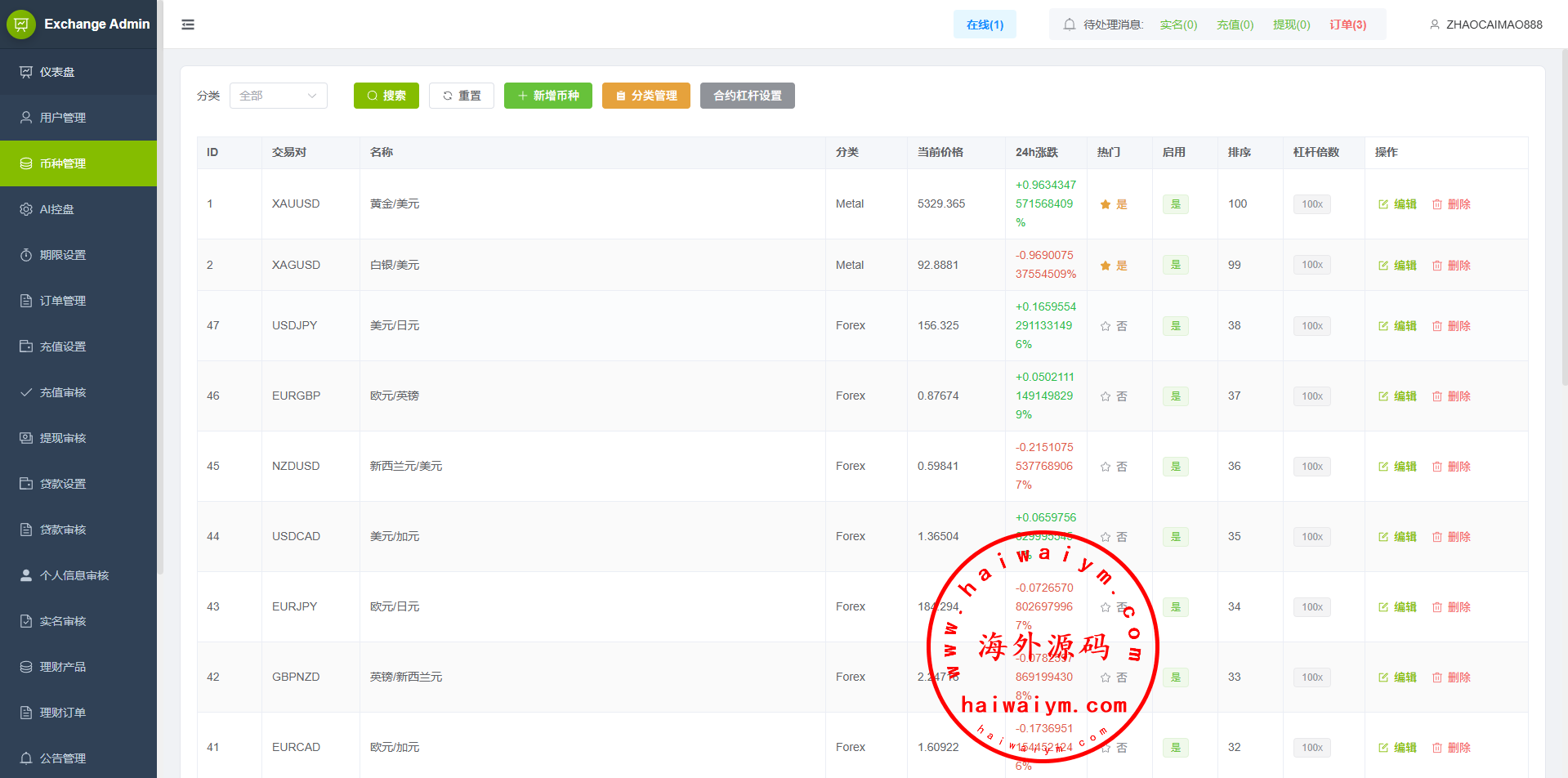 新版st7交易系统,前端VUE开发,后台VUE开发,api端JAVA开发全开源功能支持:合约,期权,贷款,理财,实名认证,AI控盘等功能K线接口对接付费接口,产品可以任意添加