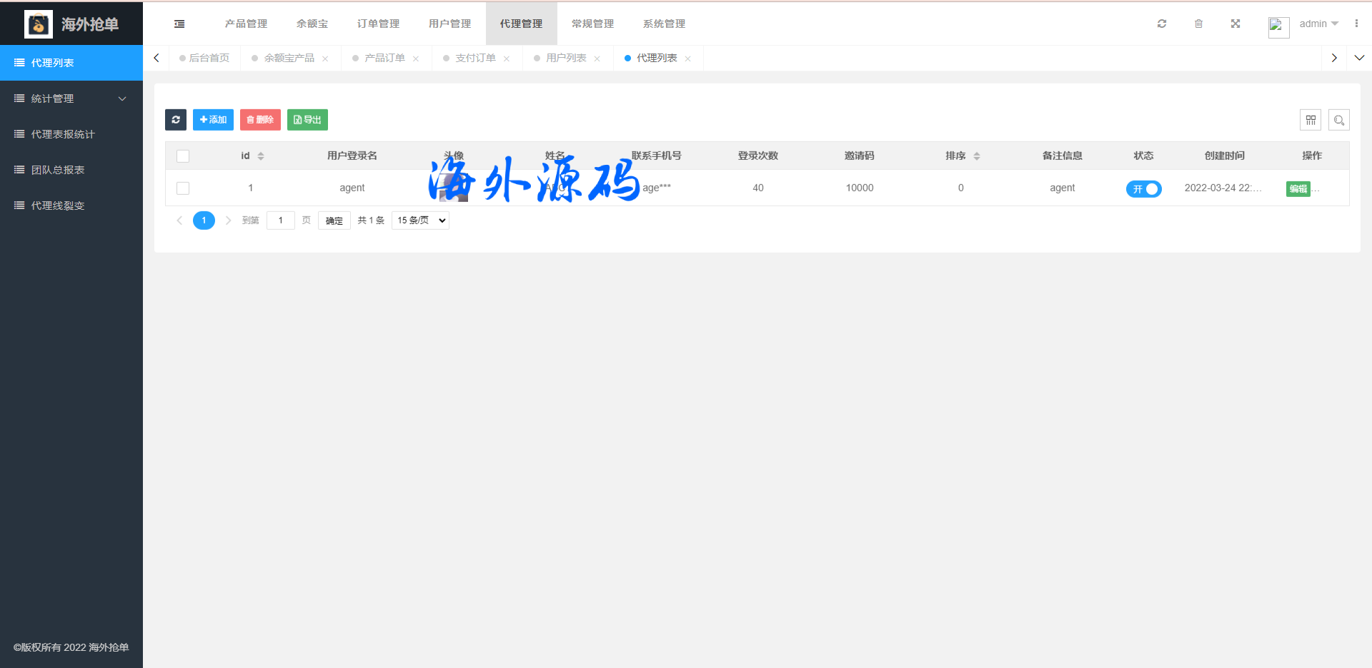 韩国抢单刷单系统/多语言刷单商城/打针/信用分/代理后台