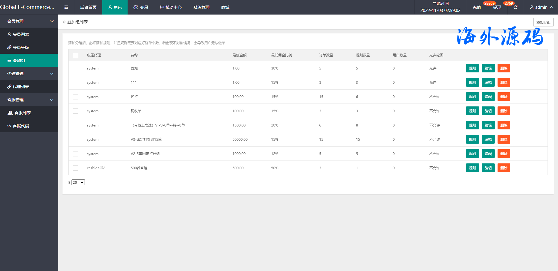 5.三级分销,带客服,等级优先,充值提现优先完美后台查询功能