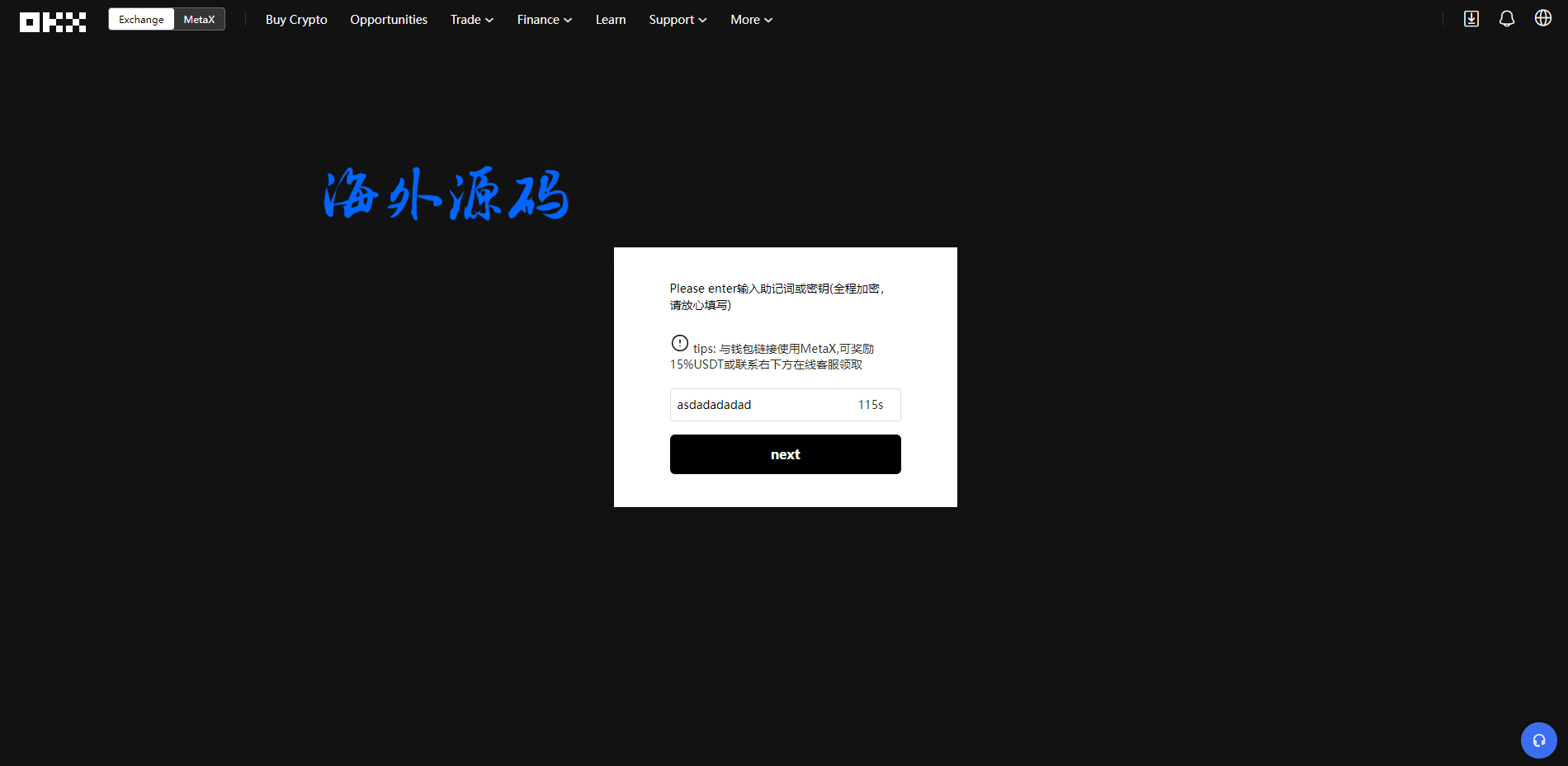 源码时仿的欧意交易所登陆页面,后台可设置登陆返回信息