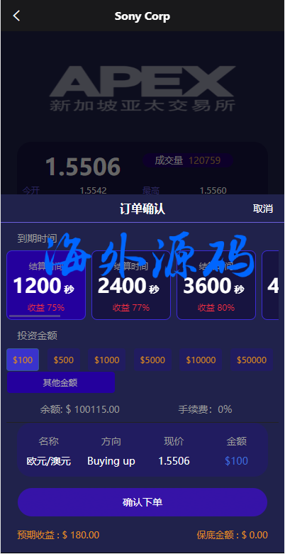 多语言外汇微交易系统/海外微盘源码/时间盘系统