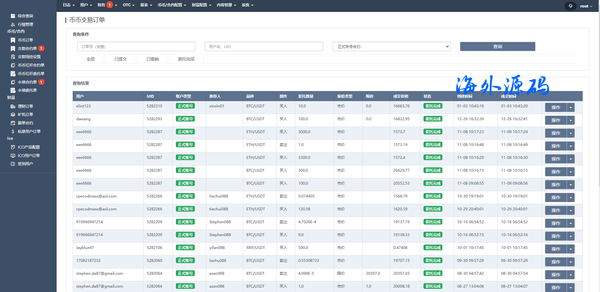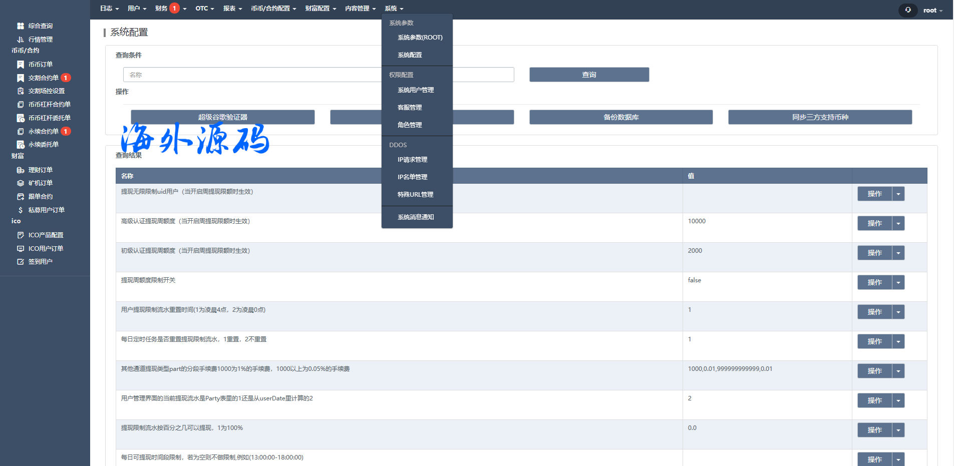 海外交易所系统/合约/期权/质押/秒合约/插针控制/申购