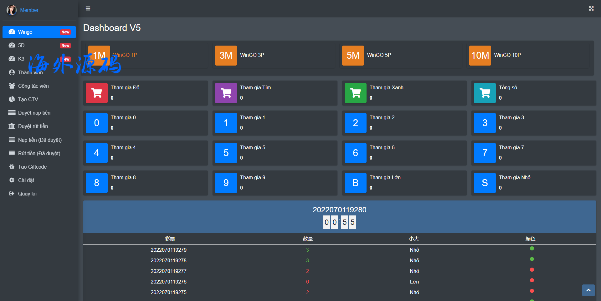 系统是针对越南本土开发的下注游戏带开奖控制,前后端均为越南语言