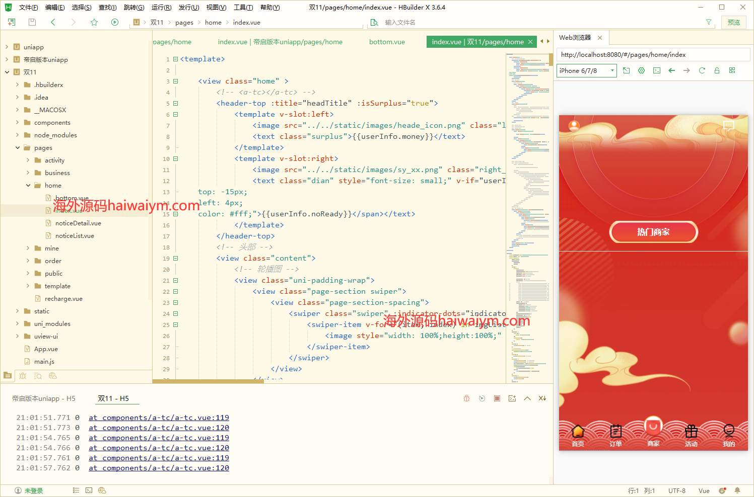 六套前端uniapp,api是php的,后端vue,代理端vue,全部开源