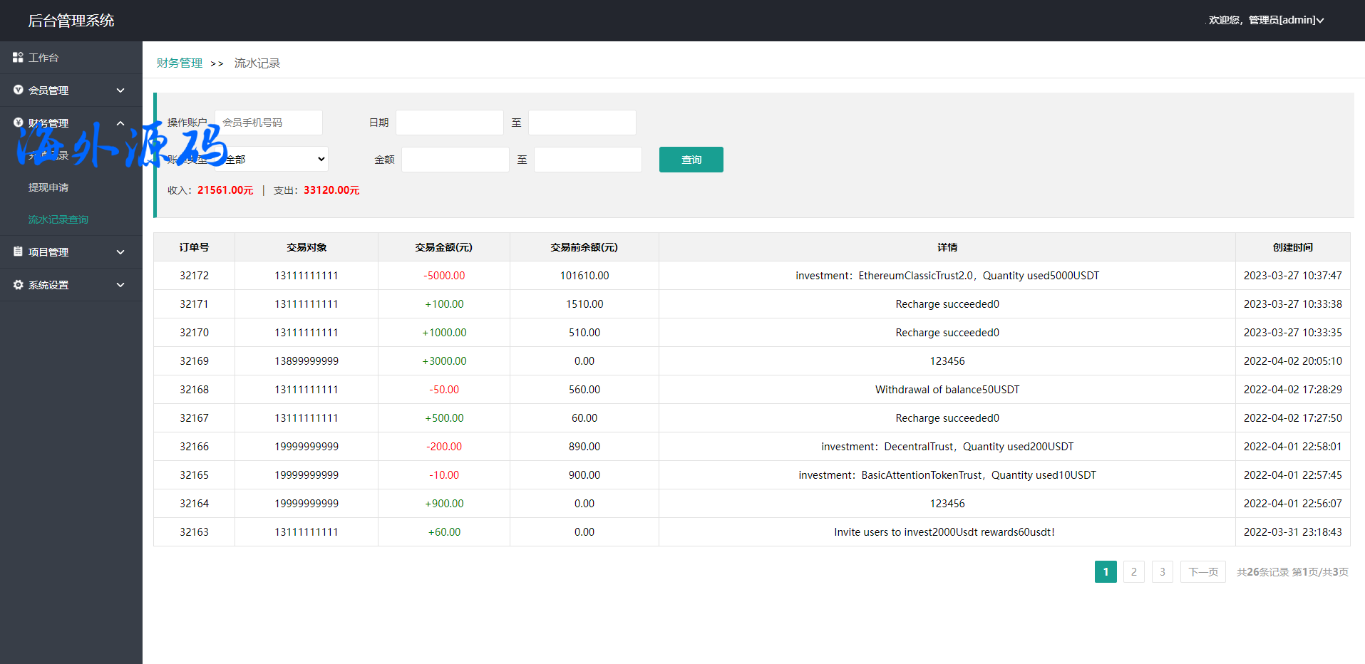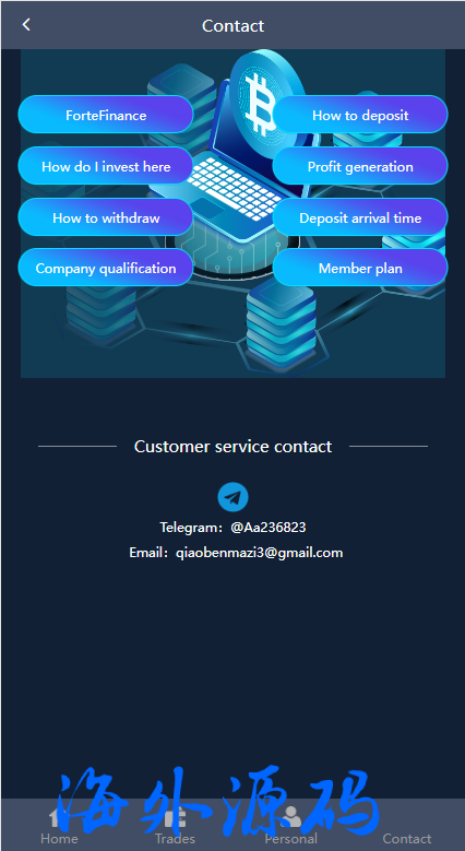 此套是以前客户运营下来的海外投资系统,前端产品可更改