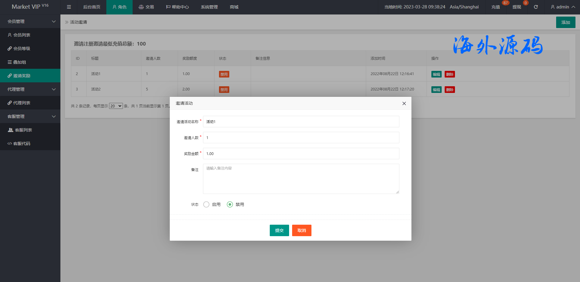 此套前端重新定制,前端多语言,新增了邀请奖励、大转盘等功能