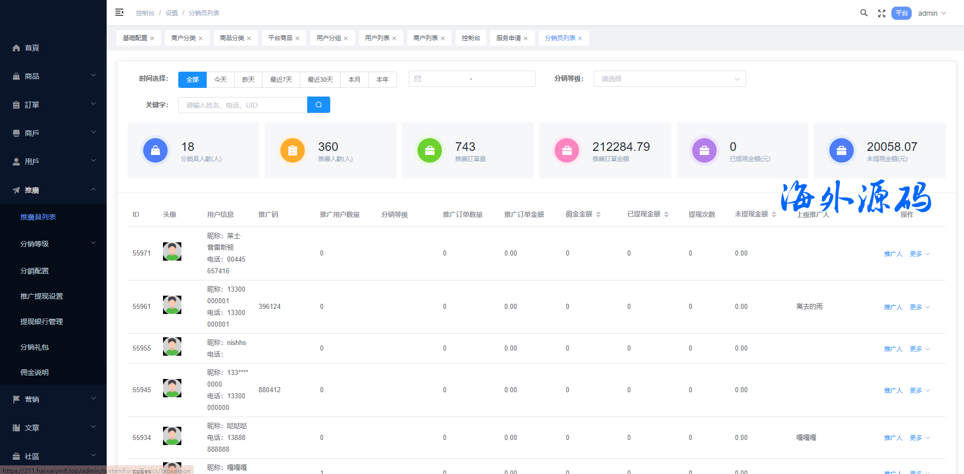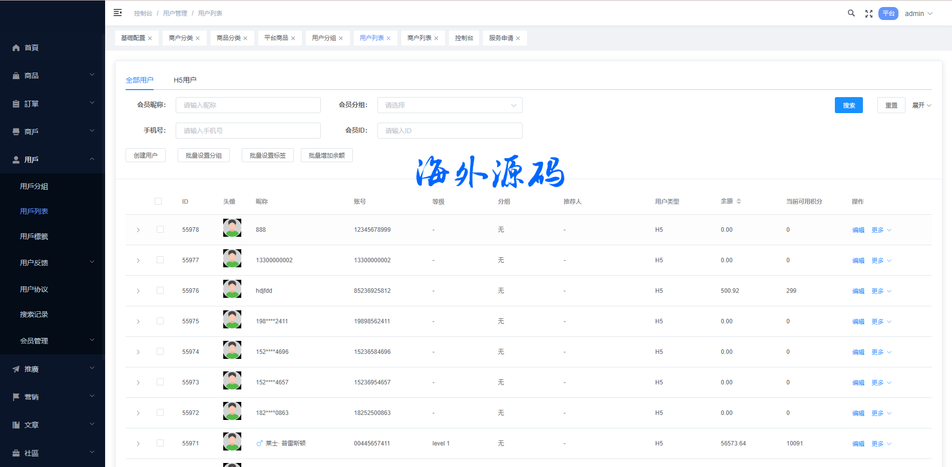 系统特点关键词:多商户入驻、商品一键铺货、进货差价、平台代发、商品采集、店铺保证金、USDT充提、店铺虚拟访客关注加购数据、一键批量注册用户、批量下单爆单、定时下单、自建物流信息等