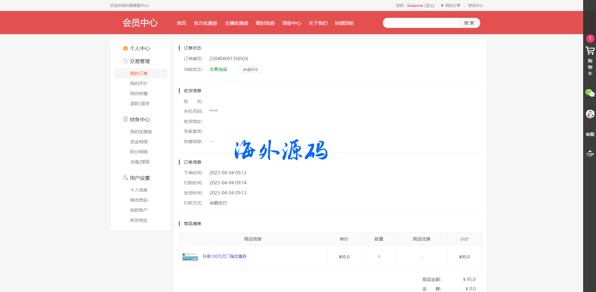 用户前端下单,后台订单可以直接回收,后台支持设置默认邀请码和抢卷时间限制