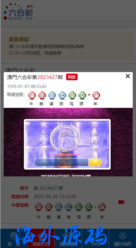 系统是澳门六合彩开奖网带开奖摇号视频,开奖的期数是自己后台手动添加的