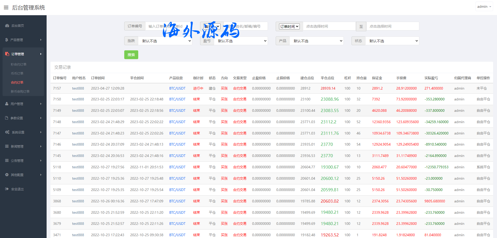 系统支持币币交易、合约交易、期权交易、新币申购等功能