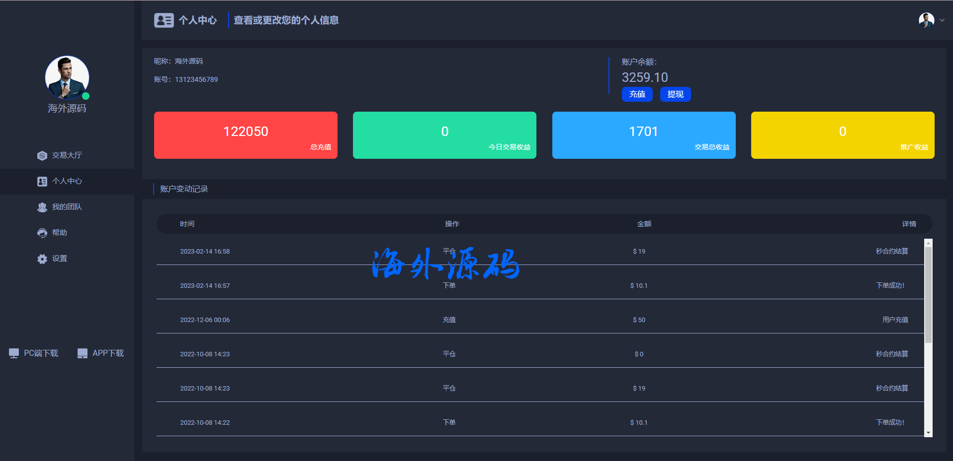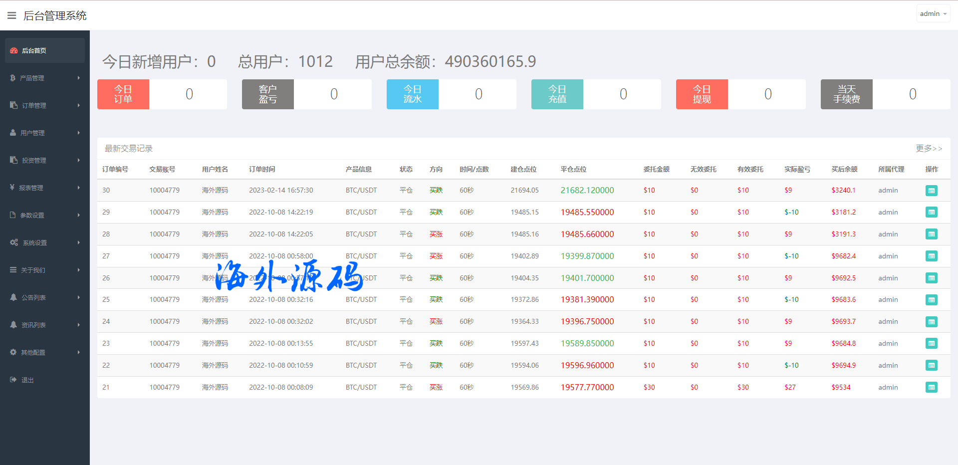二开版虚拟币微交易系统/伪交易所系统/代理后台/余额宝微盘源码