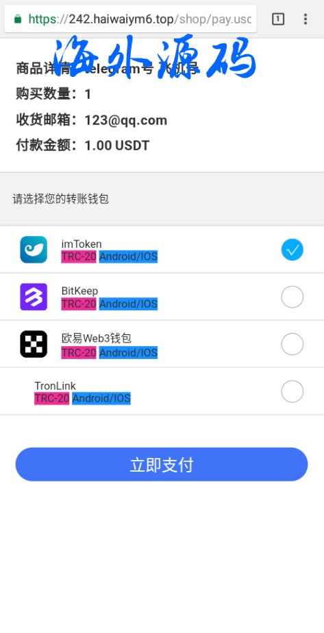 发卡商城 接了trx波场链更改权限的玩法 imToken钱包可以无风险提示