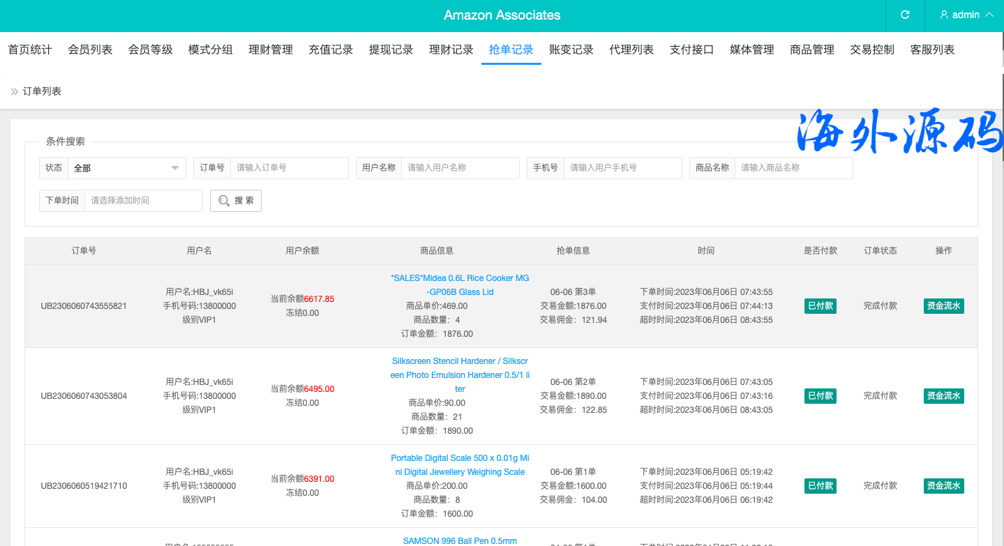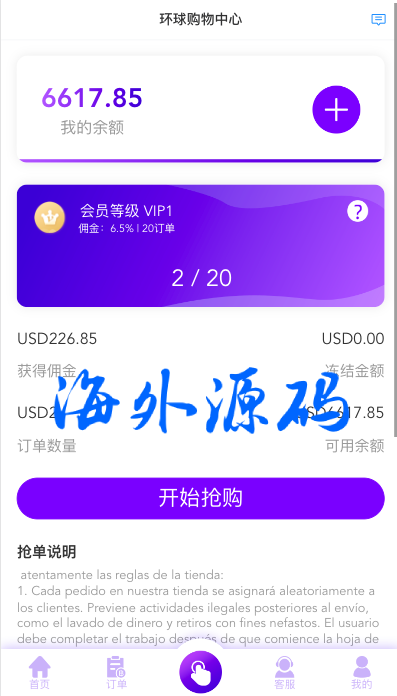 海外商城抢单刷单系统/预设订单/重置订单/签到