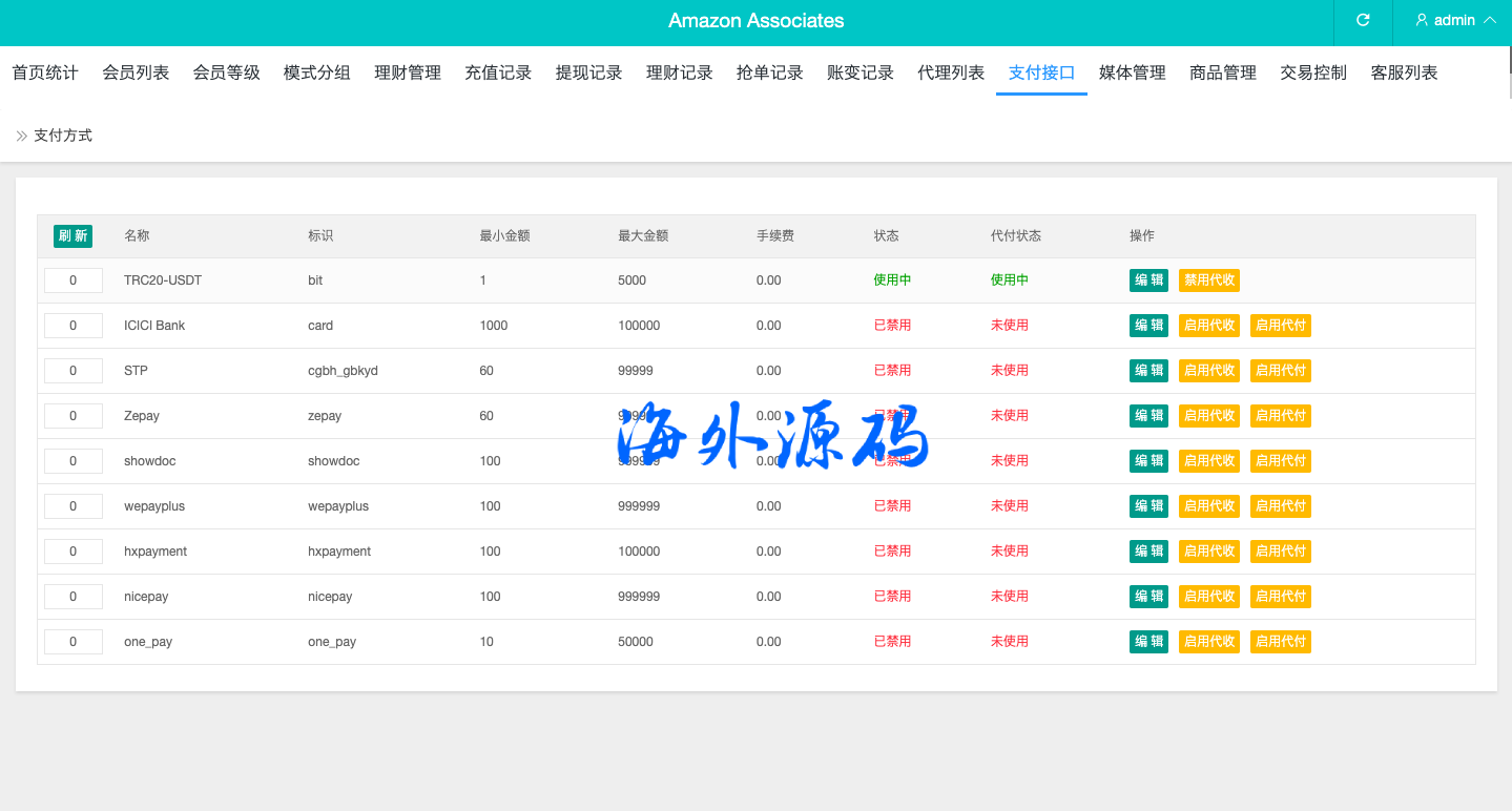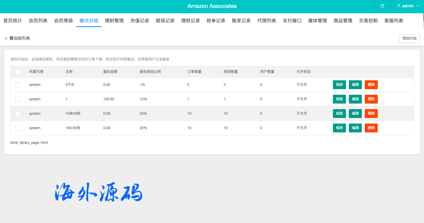 后端thinkphp框架,系统支持叠加组,打针,余额宝等功能。usdt充值,权限代理后台