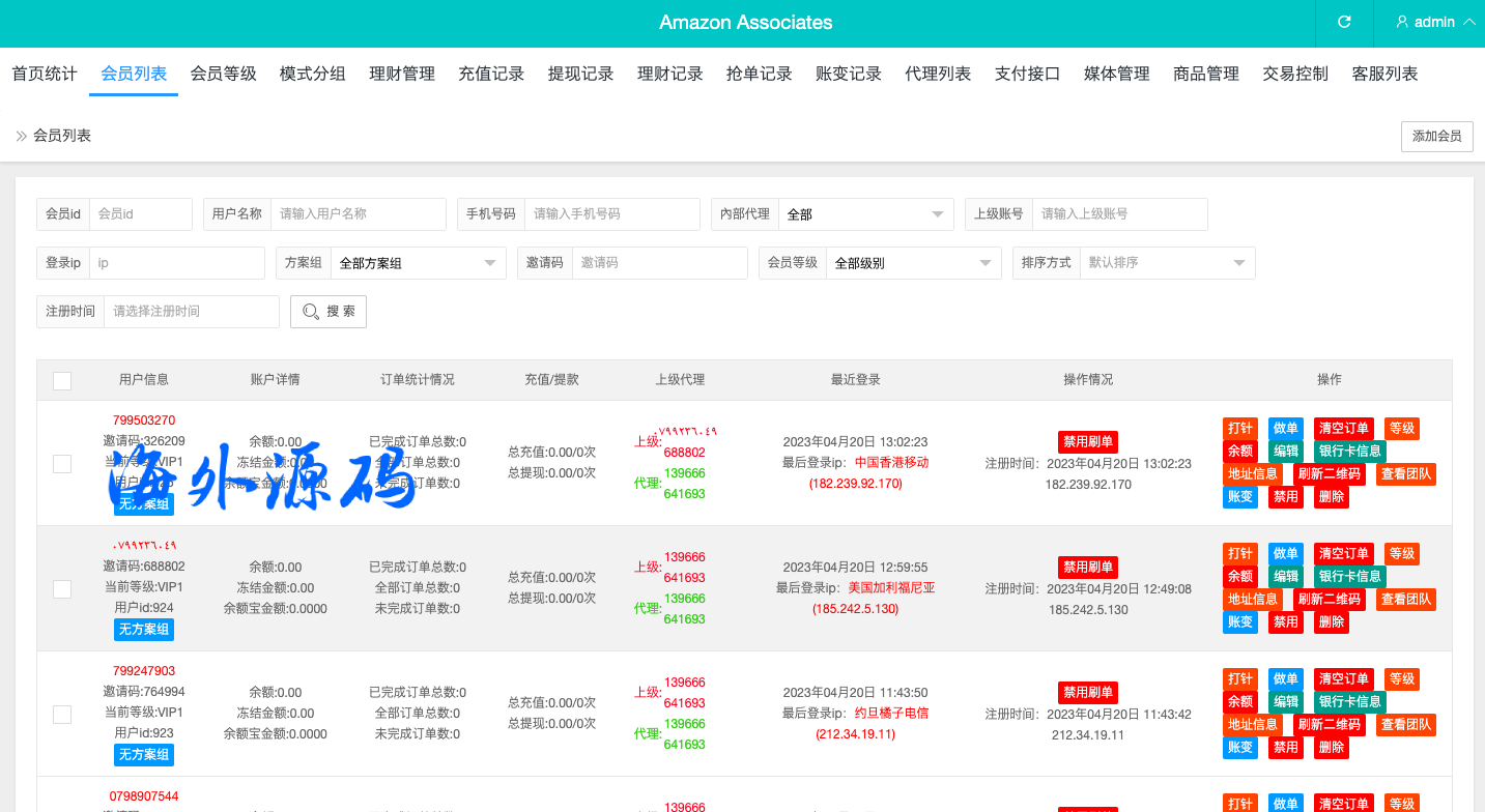 韩国抢单刷单系统/多语言刷单商城/打针/信用分/代理后台