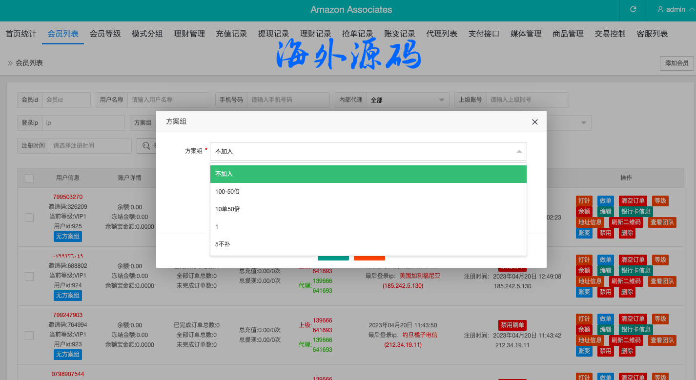 后端thinkphp框架,系统支持叠加组,打针,余额宝等功能。usdt充值,权限代理后台