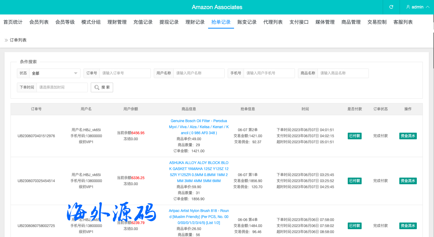 海外商城抢单刷单系统/预设订单/重置订单/签到