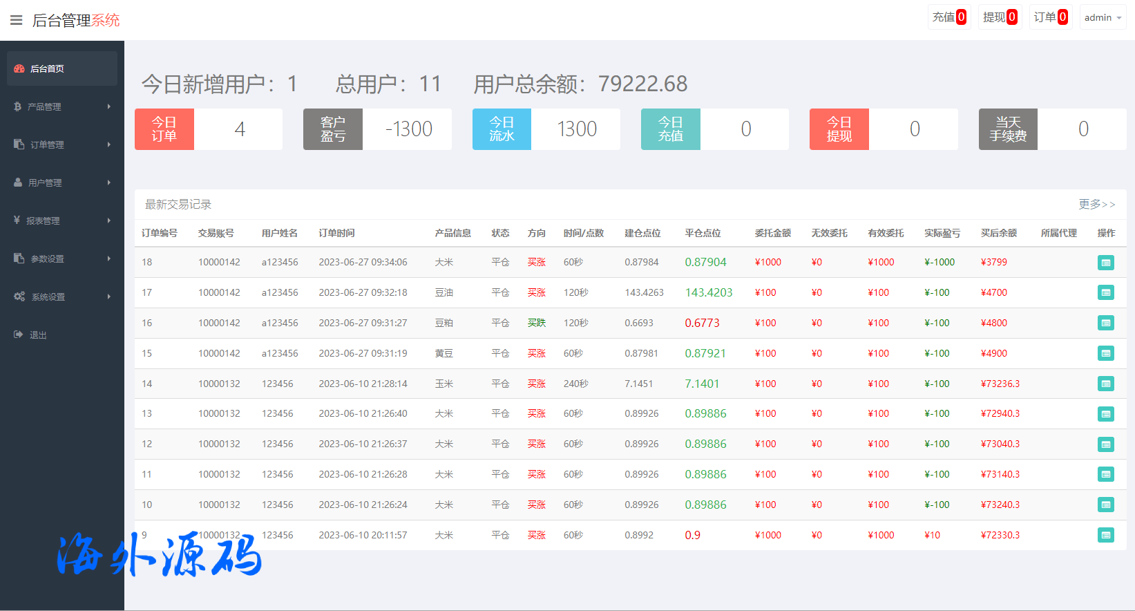 前端功能简洁,K线UI优美,用户信用分后台可更改