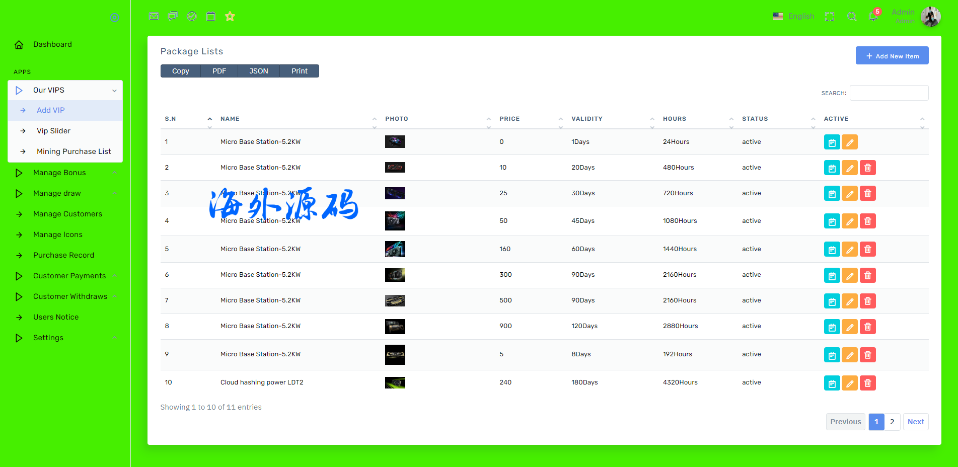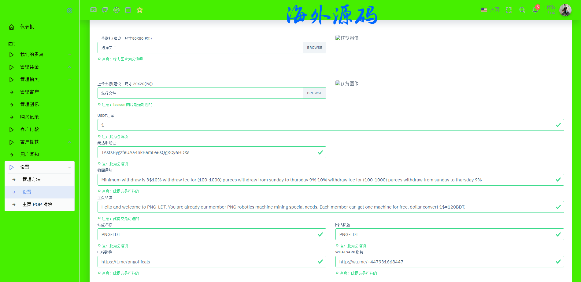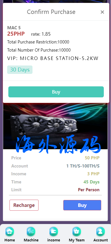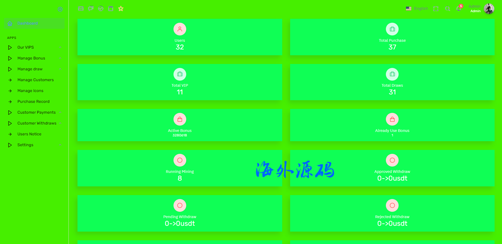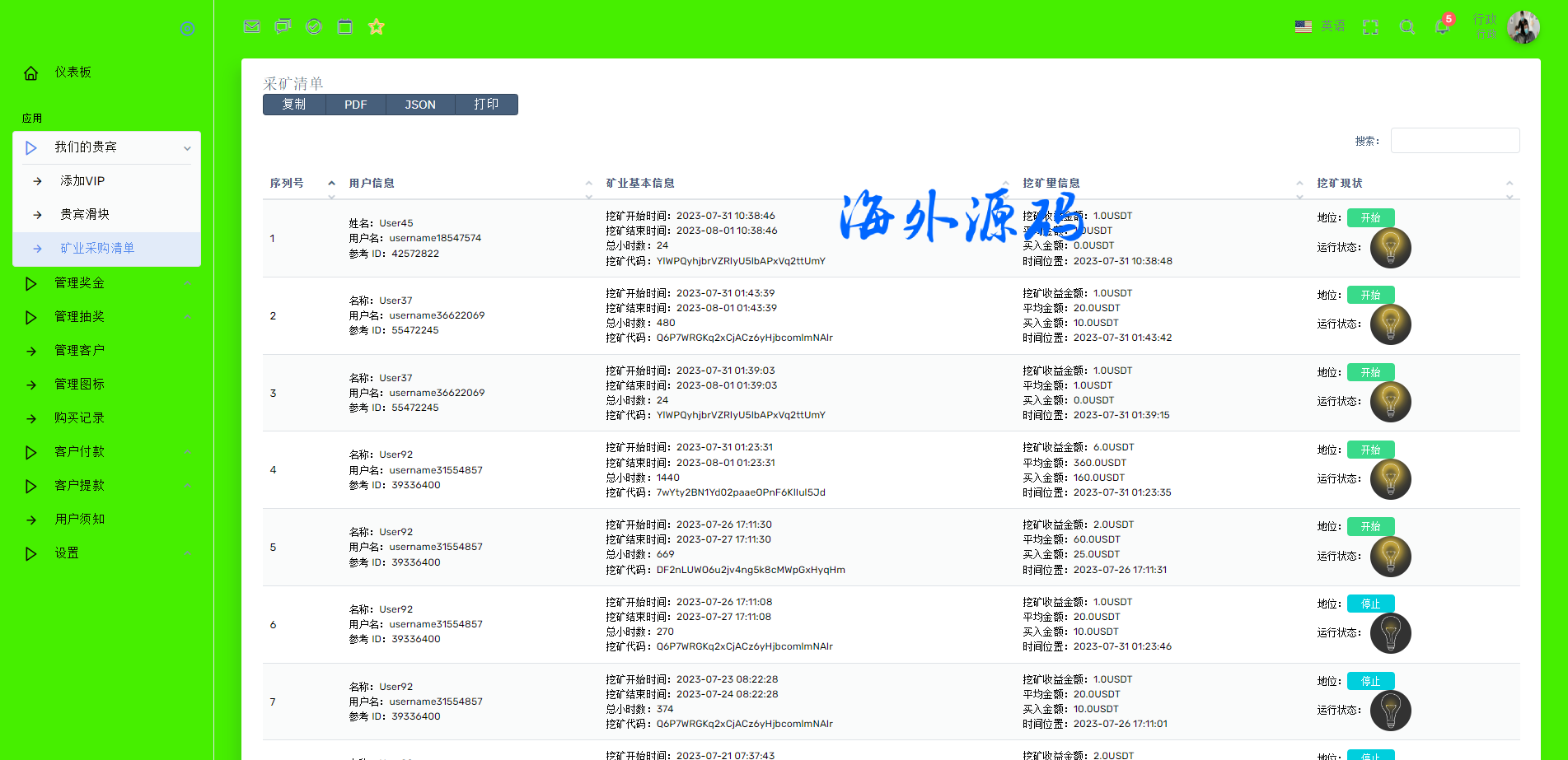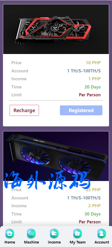 此套是纯海外版的矿机投资系统,前后台都是英文的