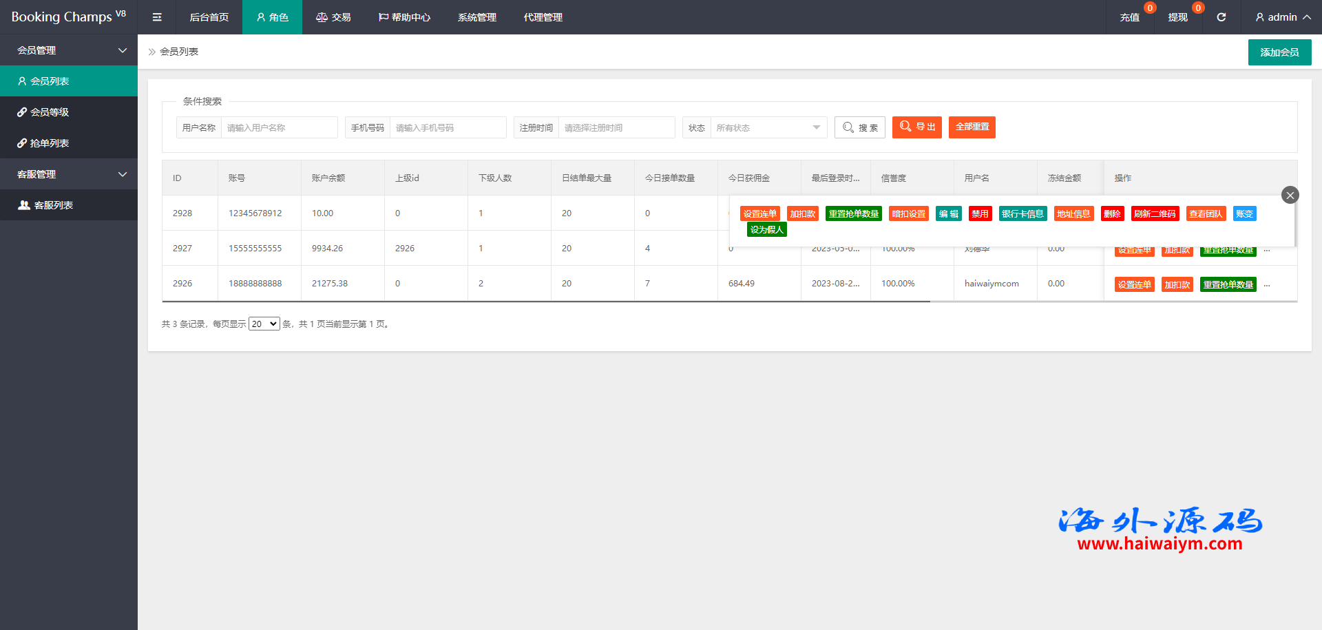 韩国抢单刷单系统/多语言刷单商城/打针/信用分/代理后台