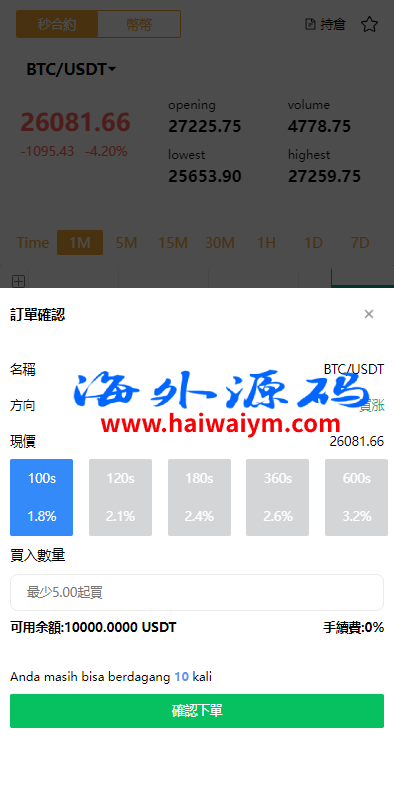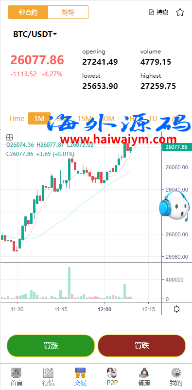 多语言虚拟币交易系统/秒合约交易/伪交易所/时间盘