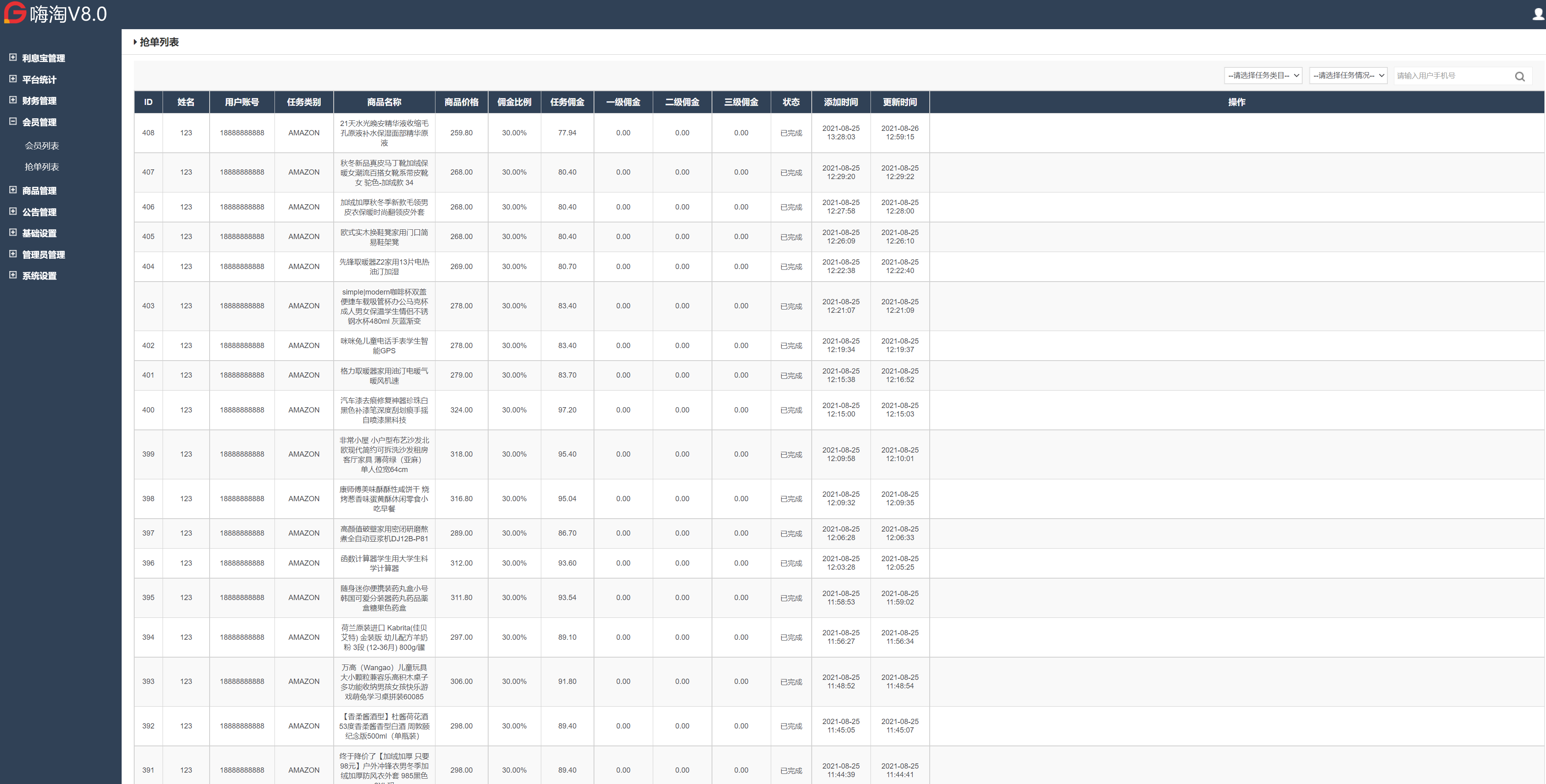 多语言抢单刷单系统/海外刷单/连单卡单