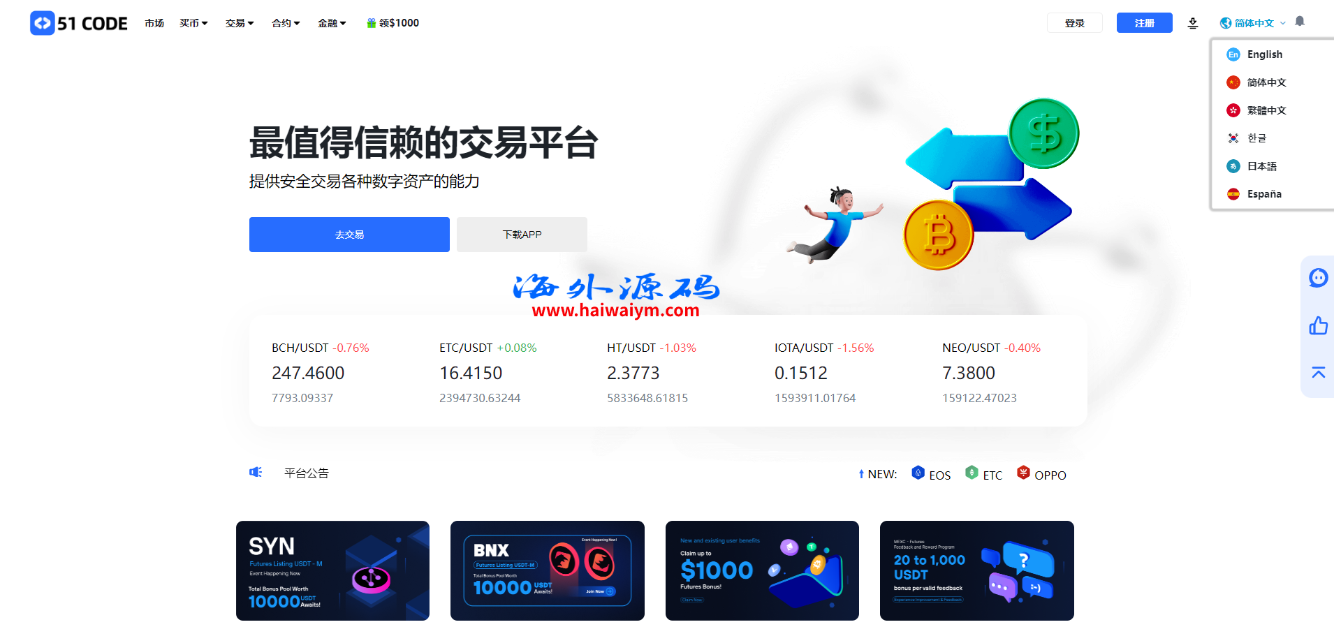 海外多语言交易所/合约/期权/秒合约/插针控制/申购