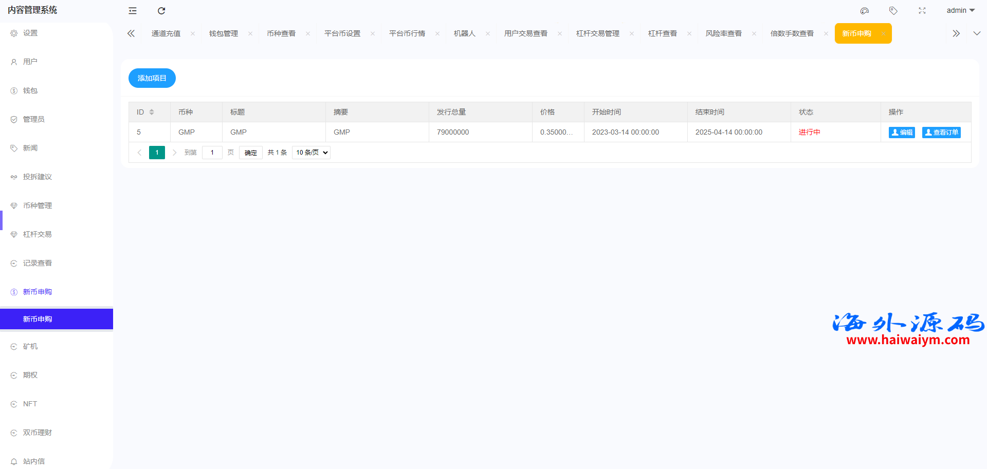 海外交易所系统/合约/期权/质押/秒合约/插针控制/申购