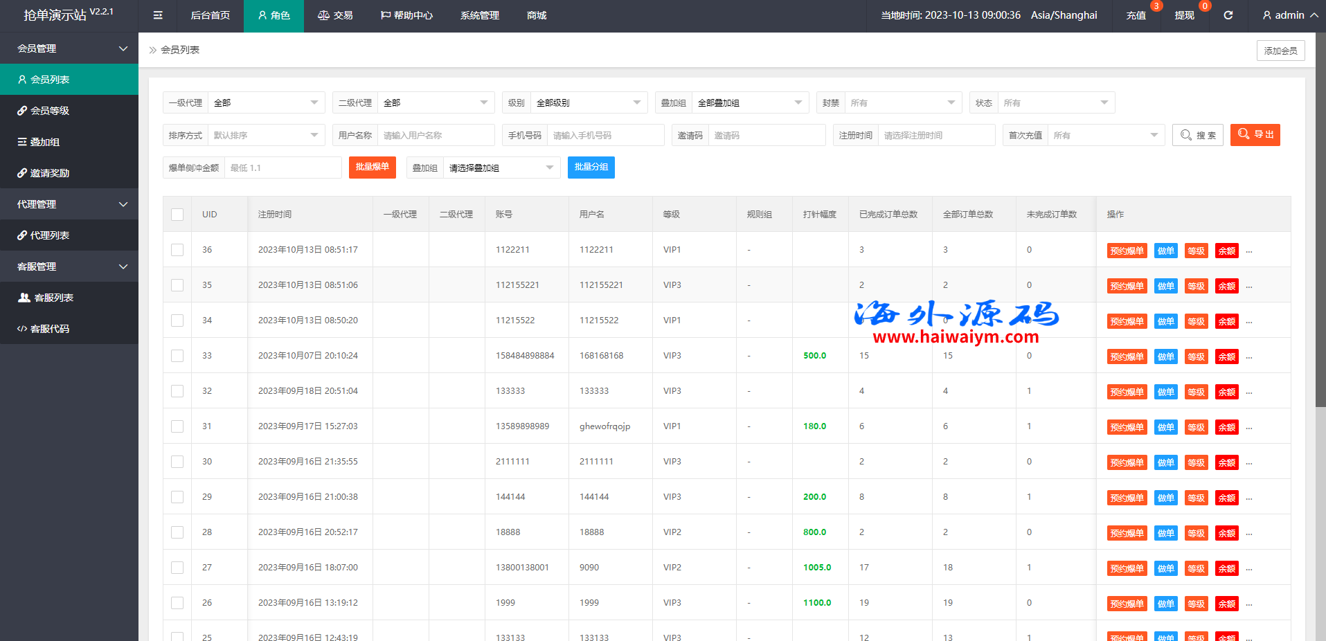 多语言抢单刷单系统/预设订单/重置订单/签到
