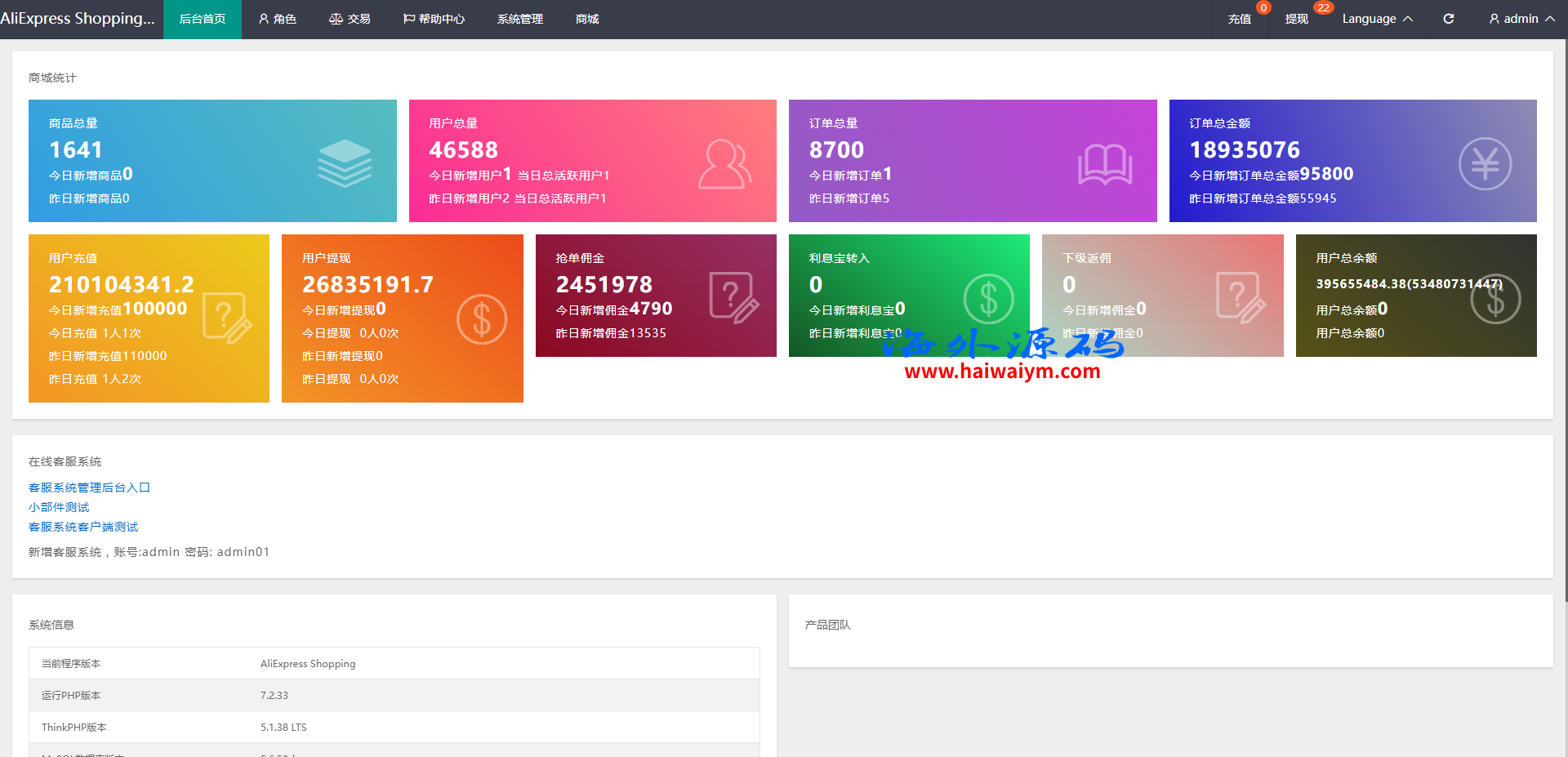 韩国抢单刷单系统/多语言刷单商城/打针/信用分/代理后台