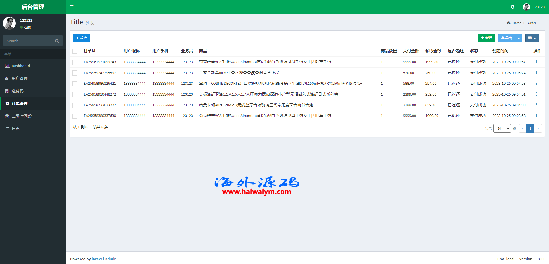 增加不同分类返利比例不同,增加领取记录,系统完美运行