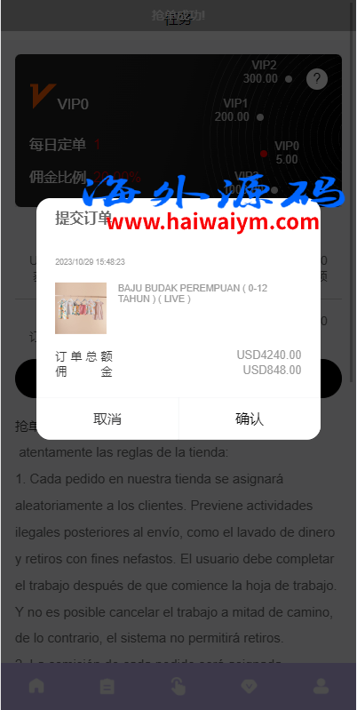 海外商城抢单刷单系统/预设订单/重置订单/签到