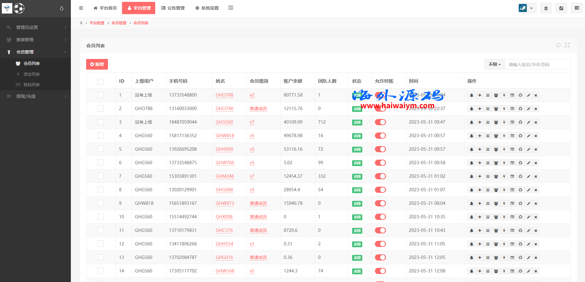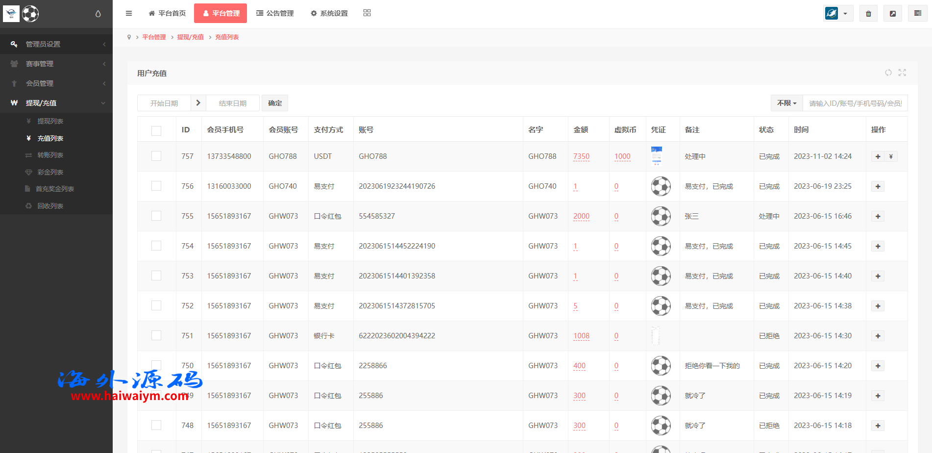 支持用户余额互转,充值方式有银行卡、usdt、口令红包、易支付,ng钱包互转余额,后台带回收功能