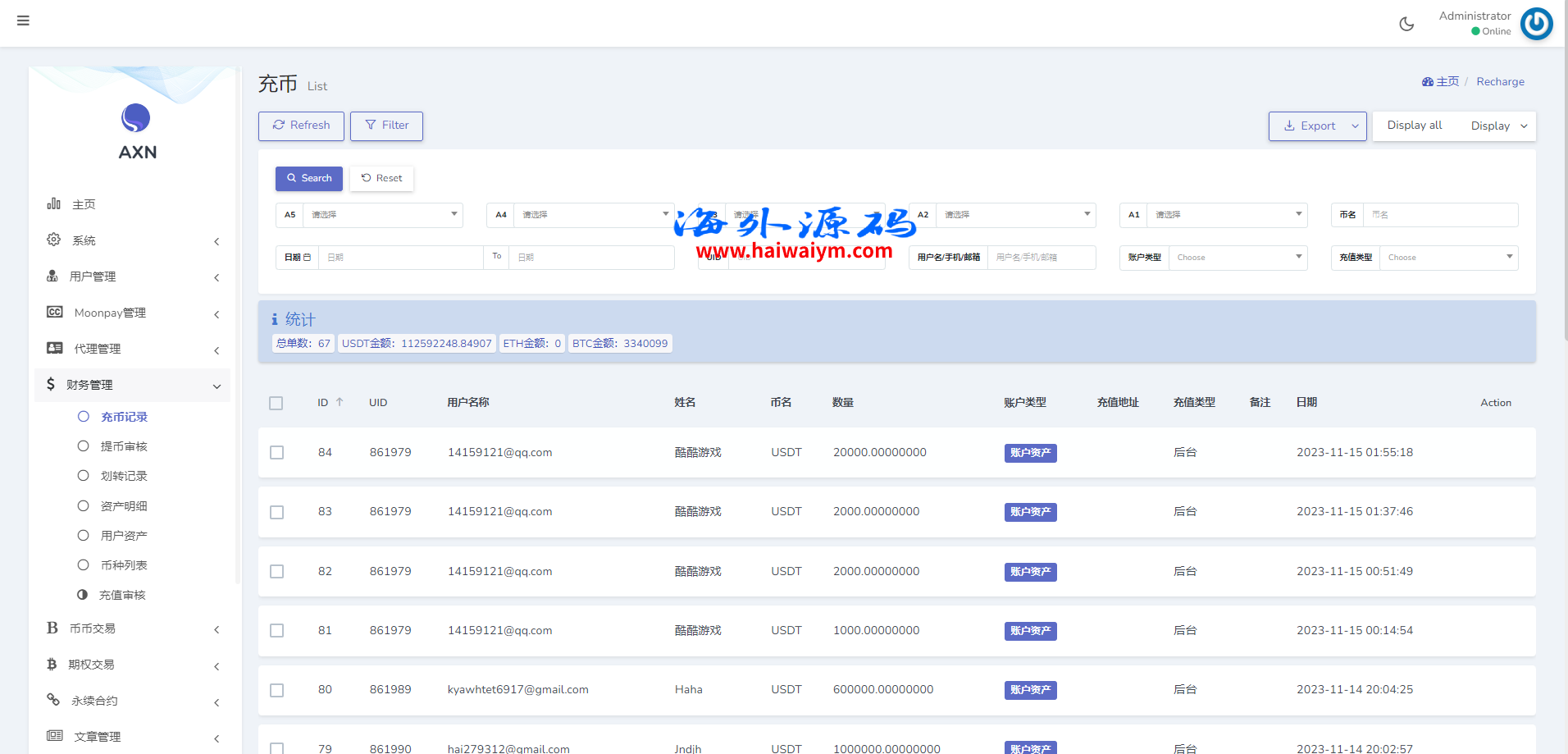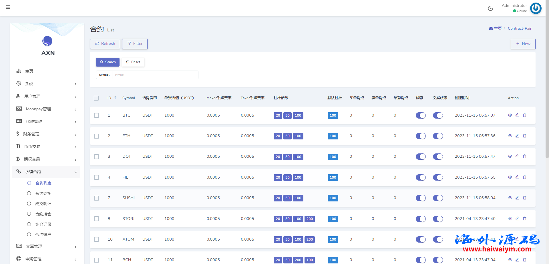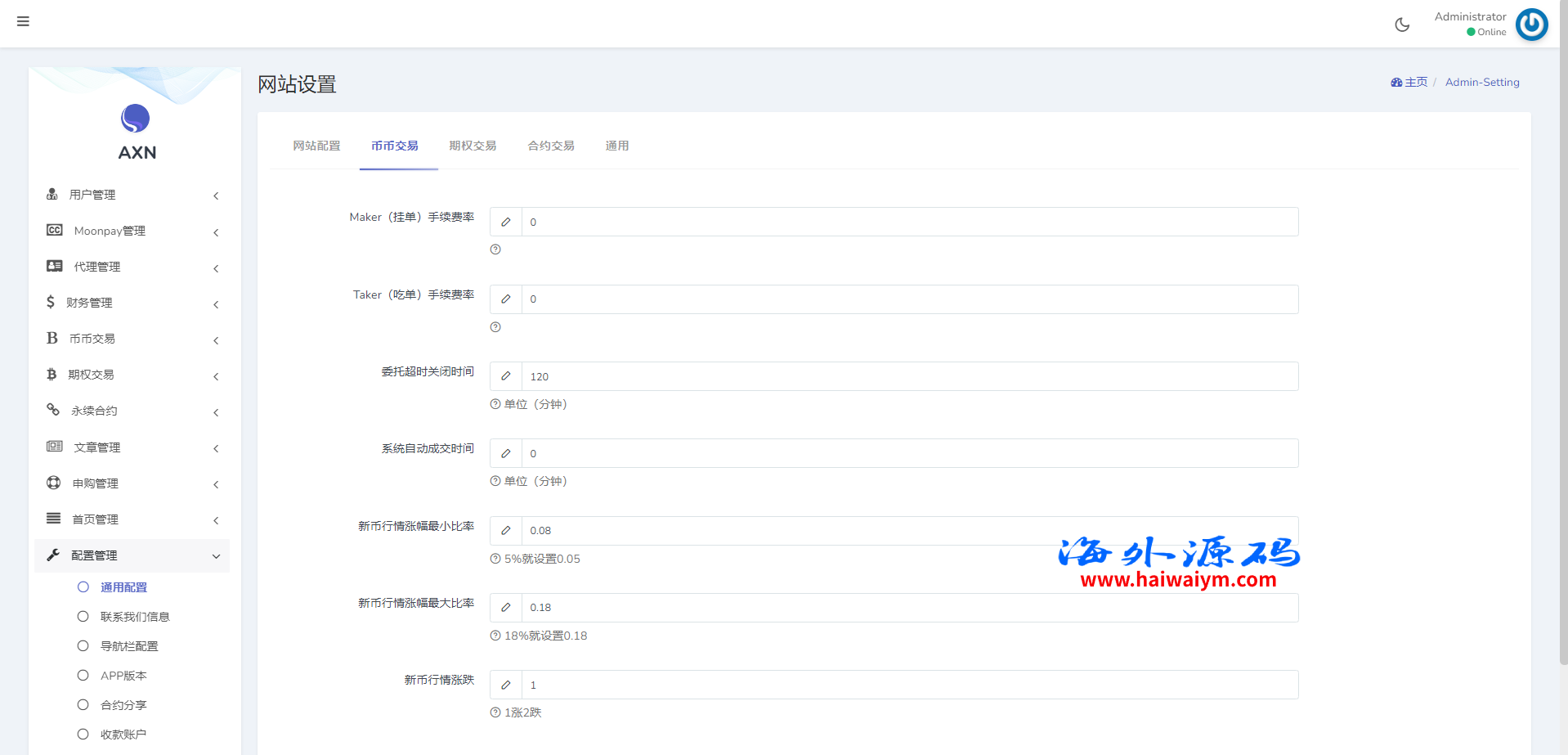 海外交易所系统/合约/期权/质押/秒合约/插针控制/申购